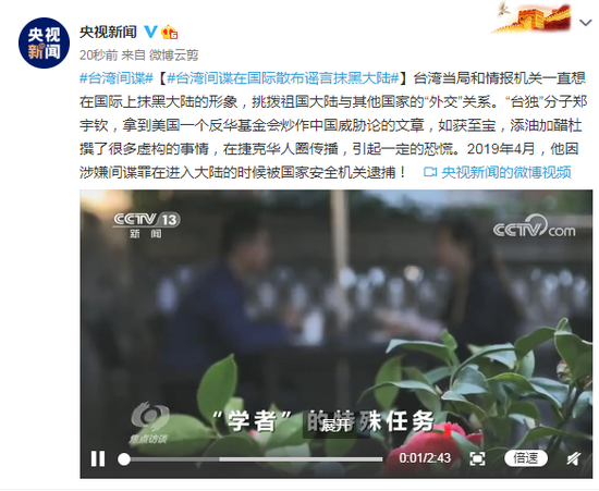 大陆敏感时刻公布台间谍案详情 打击"台独"嚣张气焰