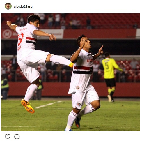 在圣保罗参加的六项赛事中,阿洛伊西奥都有所斩获。凭借这样的表现,他将三年前还是巴西国家队9号的法比亚诺,挤到了替补席上,也让球迷把他飞踹角旗杆的庆祝动作,做成了文化衫。