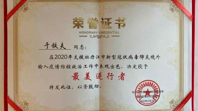 于铁夫,男,1978年8月6日出生,汉族,民进党员,硕士研究生。4月25日,作为该院抗击绥芬河口岸输入性疫情医疗队队员,随队奔赴牡丹江医学院附属红旗医院开展医疗救治工作。5月27日,圆满完成支援任务返齐,在和美酒店进行集中隔离。