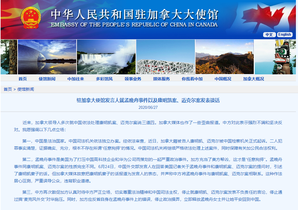 加拿大《引渡法》1999年规定,司法部长“可随时撤回”政府对引渡案件的支持,这会促使法院下令释放引渡对象。 值得一提的是,康明凯和迈克尔是因涉嫌从事危害中国国家安全活动被捕,近日两人分别以涉嫌为境外刺探国家秘密罪在中国被提起公诉。加方一直强行将孟晚舟案与两名加拿大人在中国犯罪联系起来。 在联名致信的前一日(22日),康明凯之妻首次公开露面,在接受加媒采访时也提出了释放孟晚舟的要求。 中国外交部发言人赵立坚在24日的例行记者会上表示,关于孟晚舟事件,中方的立场是明确的,这是一起严重的政治事件。即使按加方所说这是一起司法案件,正如康明凯妻子所说的,“加拿大司法部长有权在任何时刻终止孟晚舟的引渡程序”,这说明加拿大政府在孟晚舟事件上是可以根据自己的法律秉公执法的。我们再次敦促加方切实尊重法治精神,认真对待中方的严正立场和关切,停止政治操弄,立即释放孟晚舟女士并让她平安回到中国。