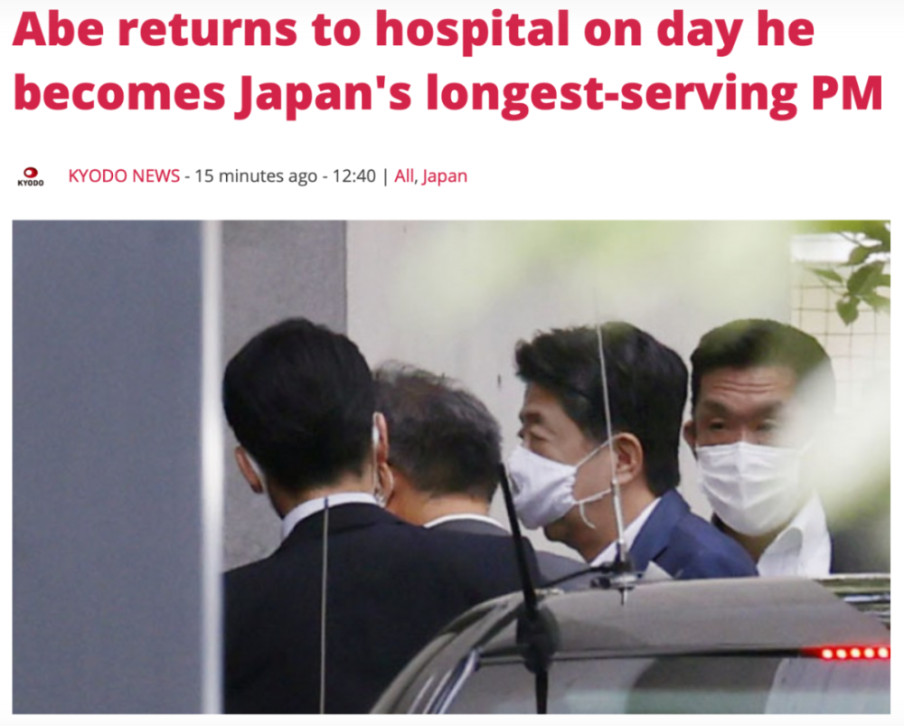 关注1:安倍身体状况是否会影响其执政? 安倍再次入院接受检查,结束后却未公布具体的检查结果,引发了外界对于他是否会辞去首相之位的猜疑。北京大学历史系教授王新生对新京报表示,安倍的身体状况很可能会成为影响他执政情况的重要因素。 王新生指出,安倍正常情况下是每半年去医院检查一次身体状况,但这次间隔时间很短,且短时间内去了两次。“日本国内有消息称,安倍的身体状况可能比较糟糕,他可能在近期作出决定,要不要放弃执政”。 如果放弃执政,他可能会组建一个临时看守政府,也有可能会解散议会重新举行大选,王新生表示。对于可能接替安倍的人,王新生认为,目前来看曾多次参加自民党总裁选举的众议员石破茂、政调会长岸田文雄、防卫大臣河野太郎都比较有可能,官房长官菅义伟也有一定可能性。 关注2:安倍因何成为日本执政时间最长的首相? 王新生指出,安倍能够成为日本执政时间最长的首相,主要有三个方面的原因。第一,他在党内及党外都没有强大的竞争对手。在自民党党内,唯一和安倍有比较大竞争的是石破茂,他首次和安倍竞争自民党总裁职位时地方选票甚至超过了安倍,但他在议会内支持力度弱于安倍,最终输给了安倍;此后连续几次竞选他都输给了安倍。在在野党方面,安倍之前民主党执政三年,但表现非常糟糕,此后作为在野党也没有突出表现。这些都导致自民党一党独大,安倍没有强大的竞争对手,自然持续连任。 第二方面,安倍在内政方面做出了很多努力,尤其是他提出的“安倍经济学”,虽然有争议,但还是有一定成效的。据日本共同社报道,在“安倍经济学”的经济政策下,日本的日经指数上升至20000点以上,工作机会也有增加,同时帮助摆脱通缩和恢复经济,取得了比较大的成效。 第三,安倍在外交方面的努力也比较突出。王新生指出,安倍应该是在世界各地范访问最多的首相,访问的国家数量和移动距离都超过了历任首相,也取得了一些进展。 关注3:安倍目前面临的执政挑战有哪些? 日本共同社8月23日最新民调显示,安倍内阁的支持率降至了36%,这是他自2012年再次上台以来的第二低值。其中,58.4%受访者对于安倍政府的疫情应对不满意,70.8%受访者认为安倍应该尽快重启议会,这一点也是在野党近来一直在推进的。 王新生认为,目前来看,安倍政府面临的最大挑战就是新冠肺炎疫情。因为疫情导致的经济萎缩、奥运会延期以及对民众生活的影响,已经对他的支持率造成重创。 共同社报道指出,安倍政府此前投入466亿日元给民众分发布口罩,却因为口罩质量不过关、分发缓慢等遭到批评;此外近段时间以来东京疫情反弹,引发了外界对于明年是否可以继续举办奥运会的担忧。在经济方面,受疫情影响,日本二季度的国内生产总值环比下降7.8%,是二战以来的最大降幅。 除此之外,王新生指出,作为一个理念型保守政治家,安倍最大的政治目标是实现修宪,即将自卫队的地位和职能写入宪法,但这一目标目前来看阻碍重重。共同社还指出,日本和韩国的关系因为战后问题陷入僵局,和朝鲜之间的上世纪七八十年代“朝鲜绑架日本人”问题未解决,和俄罗斯之间的北方四岛领土之争也无结果,这些都是安倍政府仍面临的重要挑战。 文/谢莲