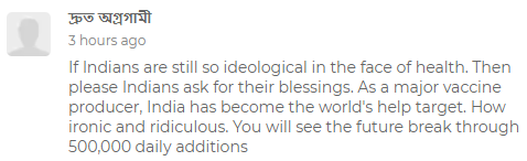 中国和印度人口规模和潜力相似,但在过去40年的发展截然不同。两国起点不相上下,但中国现在的国内生产总值是印度的数倍。因此,莫迪政府大力宣传印度制造业,力求在供应链方面取代中国。显然,部分国家也认同这一战略,否则英国首相约翰逊为何执意访问印度? 这一想法也延伸到疫苗领域。印度拥有大量生产疫苗的能力,并与所谓“四方安全对话”伙伴(美国、日本、澳大利亚)合作制定了应对中国的目标。 然而,印度这种不惜一切代价与中国竞争的固执,牺牲的是印度本国民众的利益。北京能够出口疫苗,主要是因为该国国内新冠疫情得到控制,但新德里似乎对国内情况习焉不察,而且由于粮食形势不佳,印度没有足够的经济能力实施严格的封锁。加之印度人口密度高,导致第二波“海啸式”疫情,还有具有潜在危险的病毒变种。 因此,印度参与所谓“四方安全对话”疫苗协议和对中国的所谓“反击”均已夭折。这迫使印度中断出口,“从世界舞台上后退一步”,并进口俄罗斯的“卫星V”疫苗。 这场危机规模很大,印度国内的批评声不绝于耳,这可能意味着印度现在的首要任务是为本国民众接种疫苗,但这项任务十分艰巨,而且会产生政治影响。 因此,对南亚和东南亚的许多国家来说,事实最终证明,中国是唯一真正靠谱的疫苗提供者。尽管西方无端抨击中国,但北京控制疫情并成功出口疫苗的能力意味着它仍是最好的选择。莫迪对西方的承诺无疑难以兑现,并且莫迪忽视了他的国家与中国在发展水平和经济状况上的明显差距。 不过,值得一问的是,加入西方的反华游戏是否真的符合印度的最佳利益?对莫迪来说,这是一个痛苦的教训。眼下,印度是时候从头再来了。
