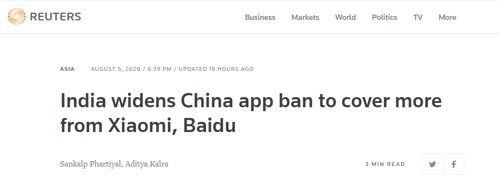 经济民族主义情绪高涨 相比还在审核中的项目,中国互联网企业则最先受到冲击。印度是中国手机APP最大国际市场之一,用户下载量超过数十亿次。然而,自6月以来,印度政府已经先后分两批禁止106个中国APP,这其中包括影响力最大的TikTok(抖音国际版)和微信。此外,还有275个中国APP已经上了印度政府审核清单,包括广受欢迎的一些游戏APP。上了名单意味着随时可能被封禁,这让印度这个中国手机APP主要海外市场的前景很不明朗。 印度政府此举给中国互联网企业带来巨大损失,仅以TikTok为例,市场研究公司Sensor Tower曾分析,TikTok在被判下架两周时间内损失的新增用户约为1500万,TikTok官方也曾表示两周内的日均损失为50万美元。 由于印度目前民族情绪高涨,一些分析人士担忧印度政府可能会为了安抚民意将禁令从软件领域延伸至硬件领域。对于这种可能性,一位印度著名财经媒体人对《财经》记者透露,印度不太可能将禁令延伸到手机硬件企业,因为没有强大的印度国内品牌可以替代,但减少对中国商品的依赖已势在必行,新冠肺炎疫情和边境冲突让这一切成为优先事务,政府会努力推动本土化制造。 为了对冲这种担忧带来的影响,印度政府出台补充条例,强调对已经做实业投资的制造业影响不大。印度政府此前为发展制造业,支持在印度建厂的手机产业或家电产业链等投资,会在14天内完成相关审批。 但鉴于边境对峙的后续影响仍在发酵,很多中国制造业企业仍颇感担忧,特别是在最近两年将产业链转移至印度的智能手机相关企业。市场调研公司Counterpoint Research数据显示,中国公司在印度智能手机行业的份额已超过80%,为了生产价格更便宜的手机,中国公司已在印度各地投资数十亿美元来新建设施。 “在边境对峙后,风向全变了,政治限制使新投资进不来,原有投资也不愿扩大规模,再加上疫情影响,他们会将产能收缩。”杨绪红说,不久前,一些中资企业员工因为疫情搭乘包机回国,目前还有至少2000名华人滞留印度,目前印度疫情很严重,每日确诊病例增幅达5万(仅次于美国),大部分中国企业都在疫情严重的大城市,企业经营陷入困境,开工率不足,销售低迷,再加上印度政府对中国企业敌视,中国企业未来可能在此举步维艰。 中企担忧并非杞人忧天,著名智库威尔逊中心亚洲项目副主任迈克尔·库格曼(Michael Kugelman)认为,当在新闻上看到印度人将中国电视机扔出窗外时,这是一个非常明确的指向标,表明公众希望政府做些什么。印度金达尔全球大学国际事务学院院长斯里拉姆·乔利亚(Sreeram Chaulia)也指出,如果边境僵局不降温,印度可能会采取针对涉及所有中国贸易和投资的新措施。 印度政府正在考虑对从中国进口的各类商品实施进口限制。根据《印度时报》和印度《经济时报》两家媒体报道披露,玩具、钢管、钢条、消费电子产品、电信产品、重型机械、纸张、橡胶制品和玻璃等物品将于2021年纳入印度的强制性标准(BIS)体系,BIS将在2021年3月前为371个产品项目制定强制认证标准。今年4月份,印度政府已经宣布10月1日起对照明、键盘、蓝牙耳机、USB外部硬盘驱动器、电磁炉、电饭煲等12大项产品实施BIS强制认证查验,此次将进一步扩大范围。 实施进口壁垒被一些印度政界人士认为是印度最有力的经济武器之一,因为印度是中国重要的贸易顺差来源国之一,据中国海关总署数据,2019年中国和印度的贸易总值是6395.2亿元人民币,其中中国对印度出口5156.3亿元,自印度进口1238.9亿元,贸易顺差达到3917.4亿元。印度方面在边境对峙后一直就拿清关做文章,虽然放行一部分,但总是不通畅,最近又暂停与中国的EMS等国际快递服务,使跨境电商遭受打击。 印度政府部门也出台政策抵制与中国相关的货物和服务贸易项目,印度公路及公路运输部长尼丁·加德卡里(Nitin Gadkari)表示,印度将不允许中国公司参与该国高速公路项目,即便是合资公司也不允许。不仅是交通项目,电力等基础设施建设也受到影响。长期以来印度一直依赖中国设备来发电及输电,以提供廉价电力,但电力部门也出手了,规定印度企业从中国进口电力设备和部件将需要得到政府许可。电力部将检查所有与供电有关的进口产品,看是否构成网络威胁。涉及印度电力部门招标的中国企业大多是国资,将受到很大影响。 在部门规则中最重磅的就是财政部在7月23日对印度公共财政规则进行的重要修正。新规要求凡与印度接壤国家的企业,在参加印度公共采购项目招标之前,须向印度工业和内部贸易促进局(DPIIT)登记,接受安全核查,能否通过是个问号。但享受印度援助的邻国不受此规限制,因此事实上受到限制的就是中国和巴基斯坦,也就是相当于在新规之下,印度所有政府机构不得从中巴两国采购商品和服务。 根据华经产业研究院的数据,2020年前五个月中印双边货物进出口额仅为283.4亿美元,同比下降了23.1%。华经产业研究院为一家市场化研究机构。 如何招架印度的组合拳? “我们与印度服务贸易主要是工程项目建设和工程服务,主要涉及基础设施建筑公司和安装企业。这部分企业深受上述新规定打击,印度政府大项目都采取招投标,中资企业在新出台限制规定下会很难做。”杨绪红说。 对于印度政府部门最近针对中国的密集行动,李钦认为,目前印度政府对中资企业的限制,更多是各个部门之间的行政行为,尚未上升到印度