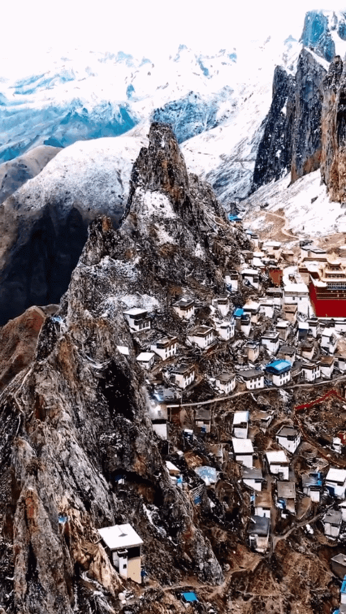 孜珠寺, 这个矗立在4800米绝壁上 的神秘寺庙, 是西藏海拔最高的古寺。 不管是远看还是近看,都是险峻无比