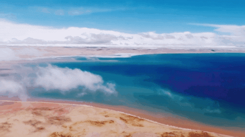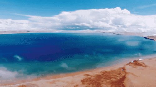 班公湖, 是世界上海拔最高的鸟岛, 很神奇的是这里 东边是淡水,西边却是咸水, 而更奇特是要数候鸟飞来时 那场高原盛典的视觉盛宴。