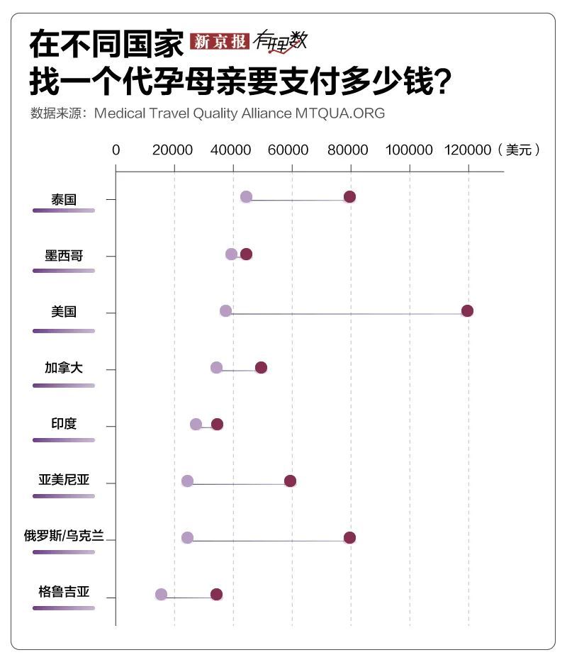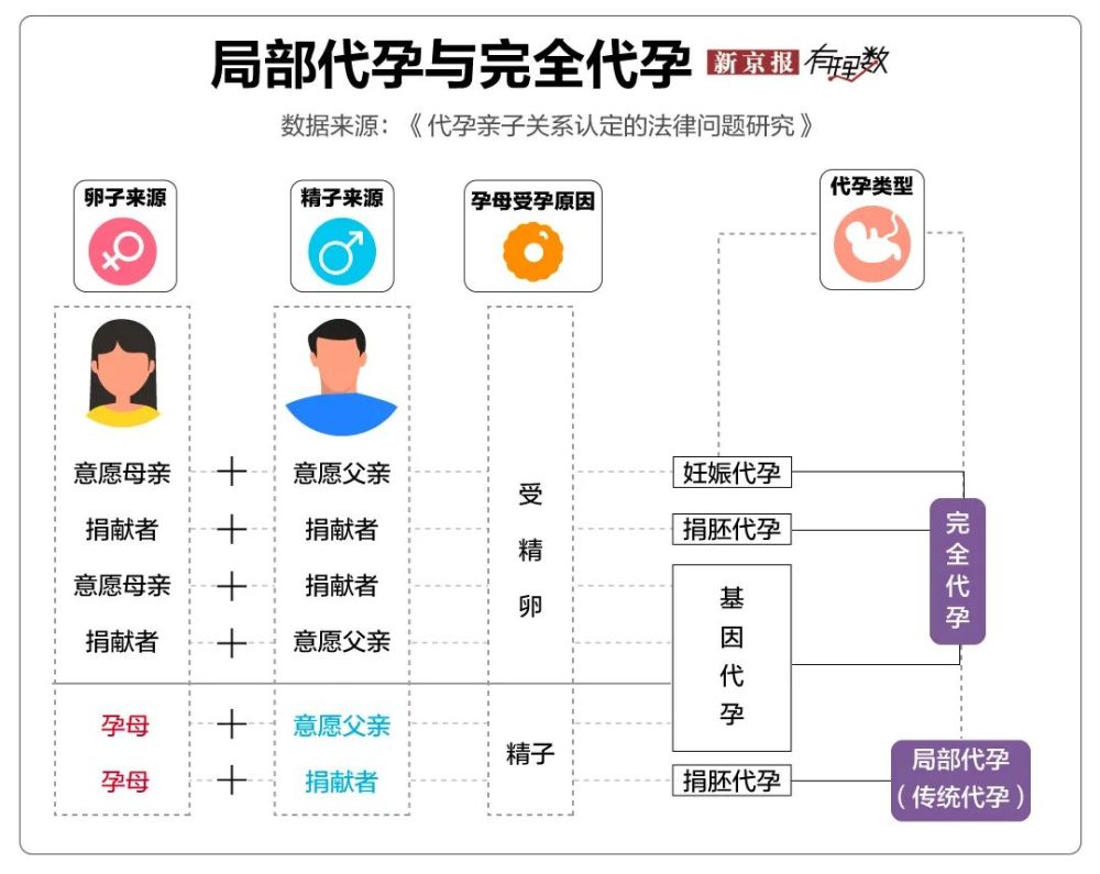 在看不见的阴暗角落里,底层女性可能成为被剥削贩卖、毫无自救能力的“移动子宫”。 全文2164字,阅读约需4分钟 数据新闻编辑 孟融 设计 甲晨晨 校对 李立军 你买了一件商品,发现不满意,遂顺利退货。但倘若,你“买”了一个婴儿,又反悔了,该怎么办呢? 把生命当作商品,就会出现这样的伦理问题。代孕行为本身是违背伦常的。其本质悖论在于:“代孕母亲”孕育子女的目的是与之分离并丧失母亲身份,委托人没有或很少承担生育负担,却获得了父母身份。你生的孩子,不是你的孩子。 郑爽与前男友张恒疑似在美国代孕产子一事冲上热搜,把“代孕”这个离普通人很远的名词扯到了大众面前。 ━━━━━ 什么是代孕 代孕,是指有生育能力的女性通过借助人工授精技术为婚姻关系之外的人怀孕。通过区分卵子是否来自代孕母亲本身,可分为完全代孕和局部代孕。 完全代孕中,代孕母亲自己并不出卵子,而是接受培育好的受精卵胚胎植入自己体内进行怀孕。受精卵可能来自意愿父亲、意愿母亲,或者匿名捐精者、匿名捐卵者。 局部代孕,则是指卵子来自于代孕母亲本身,而精子来自于意愿父母中的男方或是其他捐赠者。这和传统的“借腹生子”有相似之处,但并不完全相同:局部代孕母亲是通过试管授精怀孕,传统借腹生子则是自然性-交怀孕。 此次郑爽与前男友张恒疑似在美国代孕产子,应该归属于意愿母亲+意愿父亲组合的完全代孕。 ━━━━━