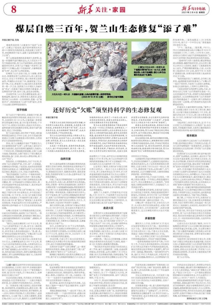 多重危害 据相关人士介绍,汝箕沟矿区25处火区发展变化情况可分为三类:一是基本熄灭火区5处;二是存在温度异常疑似火区尚未完全熄灭的火区4处;三是火区正在发展,须通过工程技术措施治理的火区16处。 如今,火区燃烧已对贺兰山生态环境和自然资源造成破坏,并危害当地居民健康。 一是排放规模庞大的有害气体。2020年3月,自治区生态环境监测中心对汝箕沟矿区自燃火区开展大气环境现场监测发现,煤层在燃烧过程中释放出大量烟气,烟气中含有二氧化硫、氮氧化物、一氧化碳等有害气体,是矿区PM2.5升高的主因,并危害矿区环境及居民健康。数据显示,火区燃烧每年仅排放颗粒物、二氧化硫就达1.29万吨和5324吨,相当于一个中型火电厂排放量的269倍和24倍。 “产生二氧化硫、二氧化氮、PM10、PM2.5的排放浓度分别占石嘴山市2019年均浓度的3.12%、1.39%、1.91%和4.39%,表明火区自燃对当地空气影响是超标的。”自治区生态环境厅执法监督局局长杨先梁说。 二是破坏矿区的土地资源。煤层燃烧造成山体裂缝、塌陷等地质灾害,过火后的土壤失去养分且土质疏松,加剧了土地荒漠化和水土流失,严重影响植被恢复。目前,火区损毁土地面积约332公顷,按年平均10米的扩展速度估算,汝箕沟每年损毁土地面积预计达16公顷。 “地表高温改变了土壤性质,会导致土地贫化,造成植被大面积枯萎死亡。”石嘴山市一基层干部坦言,目前贺兰山亟需生态修复,如果过火面积加大,土里种什么都种不活。 三是危害保护区内的野生动物。目前,汝箕沟火区已与贺兰山自然保护区连成一片。火区弥漫的有害气体,对保护区内的动植物造成危害,火区的燃烧也给贺兰山自然保护区生物廊道造成了一定破坏,野生动物的迁徙也受到一定影响,对自然保护区内的生物群造成伤害。 四是损失大量珍稀的太西煤。“煤中之王”太西煤主要用于冶金、化工等行业,据估算,火区每年烧损太西煤量约115万吨,直接经济损失约10亿元。按目前火势发展预测,50年后,汝箕沟矿区保有的太西煤可能燃烧殆尽。