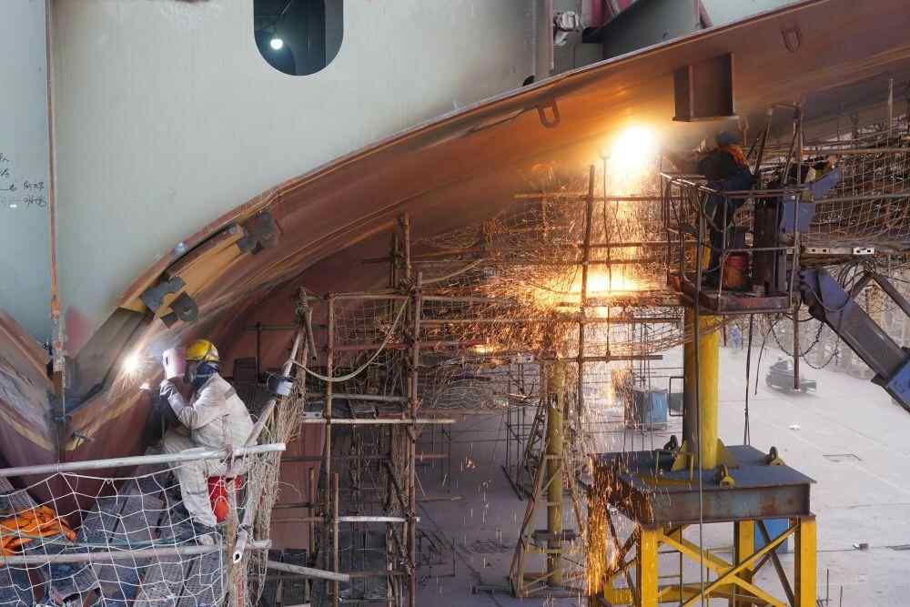 超500家供应商的全产业链工程 “随着国产大型邮轮建造工作的推进,我国邮轮产业链也逐步搭建起来,走出一条‘从无到有、从有到好、从好到强’的发展之路。国产大型邮轮的建造还能更好地支持邮轮运营行业,全面带动我国邮轮产业发展。”中国船舶外高桥造船有限公司邮轮办公室主任、大型邮轮工程项目副经理易国伟说。 国产大型邮轮的突破性意义在于,这一复杂的海上综合体带动起新材料、零部件、设备系统的研发与建造,吸纳了大量企业分工与合作。发挥好国产大型邮轮产业链“链长”作用,将有力推动相关产业的联动发展。 “通过与全球101个供应方建立战略合作关系,实现了在设计、原材料制作、现场施工、调试交付上的全流程合作。外高桥造船跨行业、跨地区吸纳了超过500家全球供应商推进邮轮设计建造,还成立了大型邮轮创新中心,促进上下游产业链建设,已有40余家优质企业入驻。”周琦说。 2022年8月8日,第二艘国产大型邮轮开工建造,标志着中国大型邮轮实现“双轮同造”,向批量化、系列化建造迈出重要一步。 目前,我国造船业完工量、新接订单量、手持订单量三大指标国际市场份额均保持世界第一。中国船舶工业行业协会秘书长李彦庆介绍,大型邮轮作为船舶工业“皇冠上的明珠”,是我国造船业不断向高附加值和多元化高端船海装备领域升级的又一“新样本”。