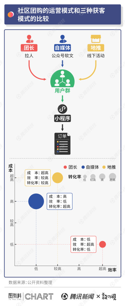 团长的推荐机制也是有两种。一种是团长和一手品牌方合作,一种是和团购平台的合作。现在的团购平台,基本上都会有几个点的返点给团长,从5个点到15个点,产品不同,返点也不一样,也有的平台直接给出一刀切的返点,比如全部都是10%。品牌方这一块是做推广,试吃由品牌方来提供,免费来试吃,卖出去的产品,会相应给到团长一些分红。 在社区团购当中,团长最重要的作用,一个是引导消费,另外一个就是服务。因为团长在社区里面,除了帮大家带货去团产品之外,还有一个筛选的功能,他对这个小区里面人的了解程度,要比平台的大数据还要详细:谁什么时间段在家,有可能需要什么……做的好的团长能够清楚地记得,谁可能会用到什么东西。 对于团购平台来说,团长的优势在于,如果用地推的话,成本很高。以北京的地推人员为例,一个人一天的工资,大概需要150-200元。地推完之后,还得有人持续做运营,还需要提货点。但像宣传和维护客户以及提货点,团长一个人就能够搞定的,并且只需要一定的返现就可以了。 但如果全部用自家员工的话,涉及到的人力和物力,根本支撑不起来。所以平台只能在运营前期,安排一些人去做地推,吸引客户,让客户入驻,并且对平台有认知,这样是可以的。如果说持续靠地推把这个平台做起来,现在不太现实。 大多数团长都会有正式的工作,只是兼职去做这件事情,所以很少有人全职当团长,更多是当成一种兼职,除非说自己想运营平台的,或者有那么几款爆品,做火了之后足够支撑所有的开销。 团长一旦开始用心去做社区团购的话,他会从多方面运营维护小区的居民。因为一旦社区团购建立起来之后,按照一家三口来算的话,500人的微信群就覆盖1500人甚至更多。这个时候,家庭会有其他的需求,比如说家里面有点什么事,需要帮个忙,有的时候就会找团长。还有的家里面有一些二手的东西想要卖出去,或者说想买二手货,但是又不想通过闲鱼这些二手平台,都可以通过团长撮合。需要一个二手桌椅、板凳,如果小区里面就有的话,肯定不会舍近求远开车去拉。 所以社区团长的职能,除了本身靠社区团购去盈利之外,后续对于小区的运营和服务方面来讲,也会有一些成长。像在疫情特别严重的时候,当时出京需要去做核酸检测,但是去医院的话,个人又约不上,当时我们这边有一个团长,他家里面也有这种需求,后来我们几个人一商量,就跟医院合作,我们团一次。 当然,这个团购是没有利润的,就是为了帮大家解决问题的。医院安排固定时间段,安排固定的人,来给我们小区有需求的人做核酸检测,这样的话可以提高效率,相当于我们提前把需要做核酸检测的人约到一个地方,然后医院来做核酸检测。当时两三天的时间团了将近100人,这个就倾向于服务方面,而不是说靠这个东西赚多少钱。 社区团购最大的优势有价格,因为运营成本低。低在房租低,人力成本低。虽然社区团购也需要有人配送,但是一个小区所有订单都配送到一个地方,这个小区10单、100单,甚至是1000单,配送只要一个人就够了。同样是1000单,每一单都单独配送到一个地方,和1000单只配送一个点,配送成本会差的很多。 另外,社区团购平台都会在小区附近有仓库,而仓库的成本同样很低。同样地段、同等面积,仓库的租金成本,要比实体店铺的租金成本低得多,就像地下室一个仓库和一楼黄金地段的门店,它俩的租金是没法比的。 当然,也并不是社区团购肯定要比传统电商、超市和便利店要便宜,因为有的产品受限于进货渠道、配送方式以及和供应商的关系,一个团长的进货量即便稳定,总量还是有限的。同样的东西,哪怕团长是一手的货源,和一天能够走上万单的进货价格,也是没有办法比的。另外有的时候,平台还要求,团购达到多少量才会按照团的价格来,但如果达不到的话,价格相对来说会上浮。 社区团购还有一个优势,就是快。现在有些电商也有“半小时到家”这种概念,但更多的东西没有办法做到半个小时说送到就送到。社区团购平台从建立之初的定位,就是围绕社区这一块,围绕快速需求来做的。 需要注意的是,社区团购不可能覆盖所有需求。原有商超、生鲜店铺以及电商渠道,它本身的功能还在,社区团购还没有办法彻底取代。