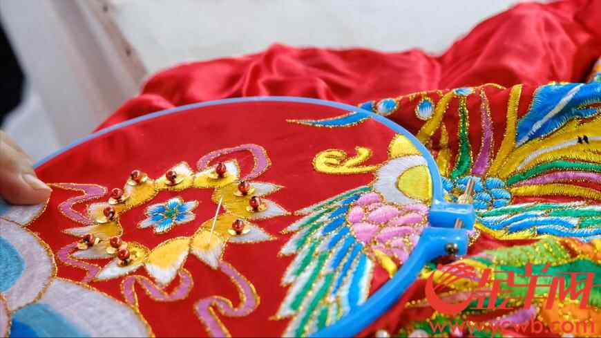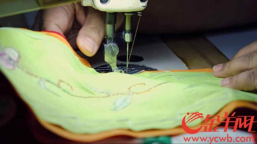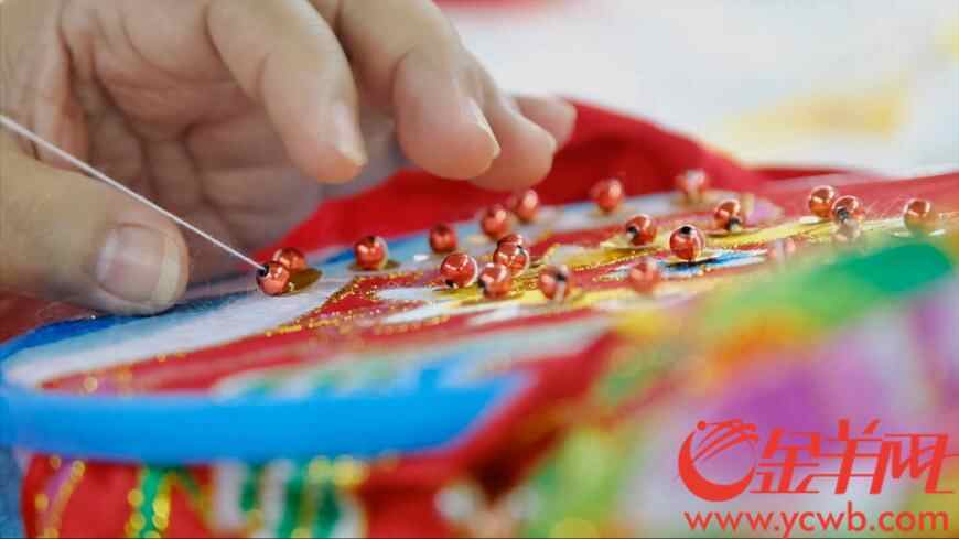 董惠兰介绍,上世纪70年代末80年代初,粤剧等文娱活动随着改革开放而兴盛,戏服生意兴隆。自小在状元坊长大的她,看着家家户户制作戏服,也逐渐萌生了以戏服制作为生的想法。“当时可不是你想学就能学,要有师傅看上你,愿意教你才能成为学徒。”1979年,才19岁的董惠兰高中一毕业,就在亲朋好友的介绍下拎着小板凳坐进状元坊戏服厂,坐着小板凳看了一年,有师傅认为董惠兰有灵性,她这才正式入行。