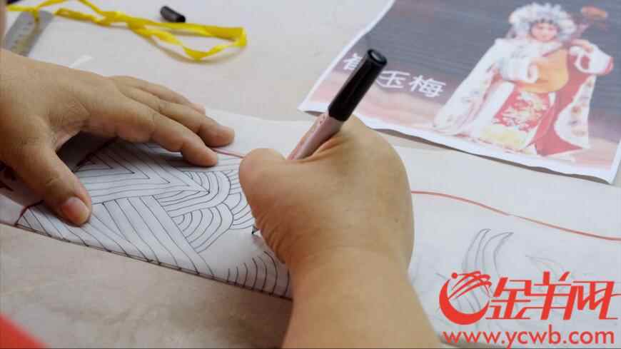 谈起戏服制作工艺,董惠兰眉飞色舞,“一套戏服需要经过设计、画图、放样、开料到绣花、过浆、剪裁、车缝制作等十几个步骤才能最终完成,加上盔头、靴鞋、旗帜等道具,纯手工需要三个月到半年时间,手推绣(半人工半机械)也需要一至两个月。”
