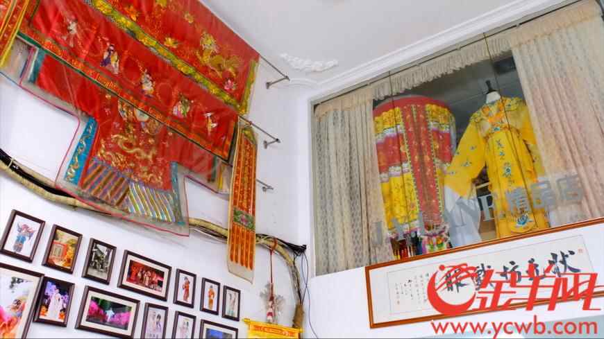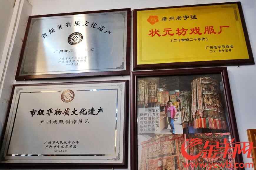 状元坊戏服厂不大,保留前店后作坊的形式,一张烫床就占去了作坊的1/3,旁边纵向排列五六台缝纫机,见缝插针摆放着布料、配件、模特架等。董惠兰告诉记者,戏服厂已经有百年的历史,绣制的戏服行销广东省内外,甚至飘洋过海。