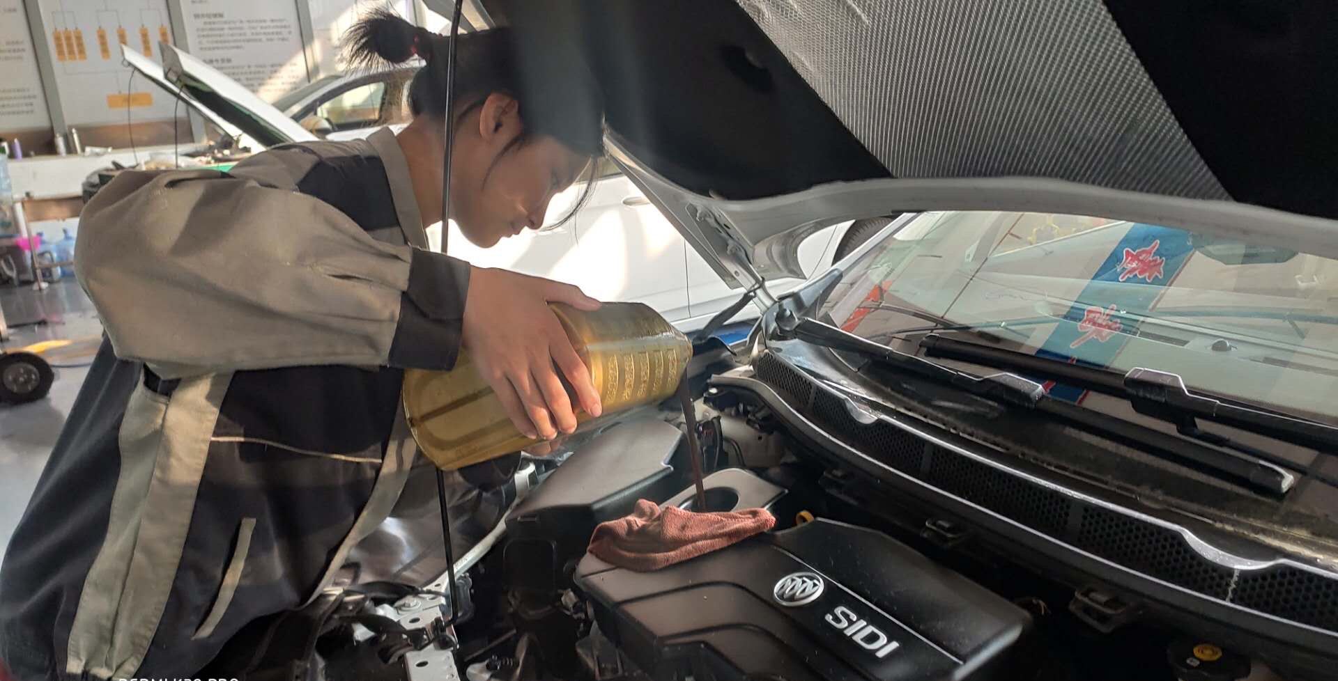 高一参加集训,“累得有时站着想睡觉” 新京报:你们平时都学些什么? 古慧晶:语文、数学、英语,这些属于基础课。此外,我们有大量要动手操作的专业技能课,比如老师讲完汽车电气设备构造某一系统的理论知识后,就会现场给同学们设置相应的故障,让大家利用检测设备进行诊断测试,并动手排除故障。 新京报:听说你高一就参加了“集训队”,为什么要参加?“集训队”的生活是怎样的? 古慧晶:当时汽车专业有很多技能大赛项目来招收集训的梯队选手,学长们介绍说如果参加集训,不但可以学到更扎实的专业技能,如果有幸代表学校参加比赛,获得省赛一等奖和国赛三等奖的话,还可以免试入读深圳职业技术学院等高职院校,而且我觉得女生穿工服很帅气,于是就报名参加汽车机电维修赛项集训。 刚参加集训队的时候,老师们都不敢相信,他们劝我说,女生还是做营销比较轻松。但我坚持告诉老师们,我能行。 我是集训队里年纪最小的,也是唯一一个女生。与平时上课不同,集训队的生活非常忙碌,日复一日重复同样的动作,以增强操作熟练性。 在获得参加广东省职业院校汽车机电维修赛项的资格后,我每天早上6:00起床,差不多6:40,我就在一边吃早饭一边看电路图了,要记牢线路编码、颜色、接插件端子等,还要验证某根线路出现故障后导致的故障现象。 我学电路很慢,因为这跟初中的知识完全不一样。特别刚开始对控制电路图认知和分析时,我脑子里一片空白,老师怎么讲我都听不懂。幸好一起集训的同学多是高二高三的学长,我就向他们请教。但主要还是得自己动手操作连接线路,观察现象,自己总结出诊断方法技巧。老师们也给我了很多帮助,他们会经常给我出故障题,锻炼我的分析、诊断及排除能力。 比赛前的一个月,我每天训练到晚上十一点多。训练很辛苦,累得有时站着想睡觉,一个月瘦了15斤。 新京报:有没有想放弃的时候? 古慧晶:当然有。比如我在拆卸发动机时,需要用到化清剂,它对皮肤伤害非常大,但这项操作规定不能戴手套。这导致去年冬天,我手上的皮肤全是裂开的。另外,为了方便维修,我们的工鞋里装有很重的铁块,我的脚被磨得红肿,有一次磨出了很深的血印。 我偶尔也有过放弃的念头。但我的两位指导教练对我太好了,我想吃什么他们都会给我买。我不想让他们失望,更不想做逃兵,所以就咬着牙坚持下来了。 新京报:这些你跟父母说过吗?他们是什么反应? 古慧晶:手上皮肤裂开的时候没跟他们说,这是每个学汽修的人都可能经历的。但是脚受伤那次父母发现了,他们叮嘱我一定要擦药。父母其实挺担心我的,但是在这种时候也不会溺爱我。 新京报:这次大赛比了哪些项目?觉得最有挑战的是哪一项? 古慧晶:一共比了四项,分别是汽车定期维护、四轮定位、拆卸发动机、汽车故障诊断。四个项目对我来说都是挑战。最具挑战的是车轮定位项目,因为拆卸减震器,下摆臂、弹簧等作业项目时需要大量体力。