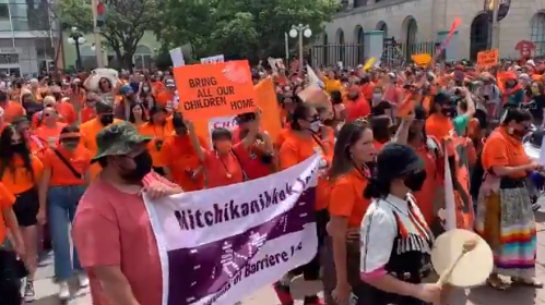 一座相对较小的英国女王伊丽莎白二世雕像也被推倒,人们还爬到雕像上拍照。这两位女王都被视为英国殖民史的代表。 加拿大第四大城市卡尔加里的警方则表示,该市有10座教堂都在夜间被橙色和红色油漆泼洒,其中一间教堂的窗户也被砸碎。 另一边,加总理特鲁多今年致辞宣称,发现成百上千名儿童遗骸“敦促我们反思国家的历史失败”,以及加拿大原住民和其他许多人仍然面临的不公正待遇,并承诺“相互倾听,以纠正过去的不公正”。 对于不列颠哥伦比亚省南部一所原住民寄宿学校旧址附近又发现182具无名墓葬,外交部发言人汪文斌7月2日回应说,这已经是自5月份以来,我们第三次看到有关加拿大原住民寄宿学校旧址发现无名墓葬和遗骸的新闻了,这一消息令人震惊和心碎。