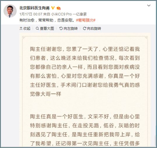》》北京四中学生来信 尊敬的陶勇医生,您好: 我们是北京四中2023届六班的陈南钰、孙宗逸、王雪卿、张丁凤、张潇伊。怀抱着对您的敬意和向您学习的心态,我们写下这封信,希望能够得到您的宝贵答复。 诚实地讲,我们第一次知道您,是您被刺伤的事件登上新闻之时。最初,我们感到极大的愤怒,都在相关报道底下评论,想要严惩凶手。之后,随着更多新闻报道的出现,我们逐渐了解到更全面的您。您的成长历程、职业生涯发展、对自己遭遇的恶性伤医事件的一次次发文……都让我们看到了更为立体而伟大的人格。 为了更深入、准确地了解您,我们在写这封信之前,学习了很多您的访谈。依据这些内容,我们经过讨论,得到了许多宝贵的人生经验。 您曾在《人物》采访中提及由于内心坚定的目标,所以不会被消极情绪所拖累。我们坚信,一定是坚定的目标支持着您走过学生时代,并且助力您在职业生涯中不断突破。 您曾在那个办公室遭遇了袭击,留下了身体和心灵上的创伤。但您在《朗读者》中回答董卿老师“为什么没有换一个办公室”的问题时,表明那间办公室并不只会让您想起害怕的事,更会想起许多美好感人的事。这表明您的内心不只是勇敢的,还有更多的善良。 面对此次伤医事件,您竟然能够从凶手的角度思考,认识到“生理、心理、社会”的医学模式中,心理的重要性。 对于伤痛,您认为它成为了提高您生活幸福感的因素,这或许是您对待一切人生经历的态度。伤痛提高了您的社会知名度,从而深化了您的社会责任感,为您提供了更好的创造社会价值的机会。是您对于实现个体生命价值与实现社会价值的人生追求,让您得以化伤痛为契机。 当然,您也提到了自己的困惑。比如面对“天花板”的彷徨,不断权衡在公立医院和私立医院工作之间的利弊,考虑“从医值不值得”的问题。然而正如您所说,“通过对医学理念的思考,可以帮助我建立一套自洽的逻辑体系,也就是信仰”,您将信仰和职业结合,于是所谓的困境似乎也不再成为困境。 类似于以上我们所提到的,您对我们的启发还有太多太多。在此我们想提出以下几个由您的思考所引发的问题,希望得到您的宝贵建议。 首先,针对您多次强调的“坚定目标”,我们很想知道您是如何进行目标的确定,并且一直坚定下去的。 第二个问题是我们中有意愿学医的同学的困惑: 前几天,看到新闻头条,是刺伤您的人被判死刑缓期。我们感到一丝宽慰。同时,这作为国家的表态,一定给了许多有志于学习医学的人们或在读医学生一份鼓励。但是对于大部分人来说,这类事件还是造成了难以消除的心理阴影。