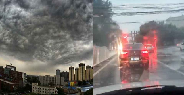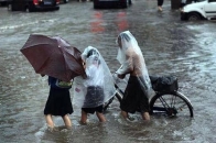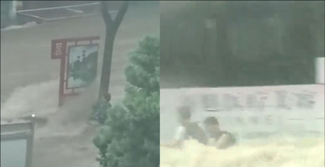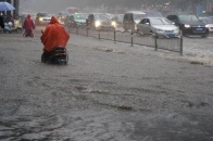 强降雨突袭山西:路人踩着齐腰深的雨水举步维艰