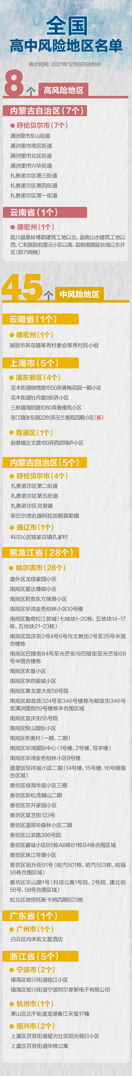 11月15日(含)以来途经上海市浦东新区; 11月4日(含)以来途经内蒙古呼伦贝尔市; 10 月18日(含)以来途经云南德宏州;
