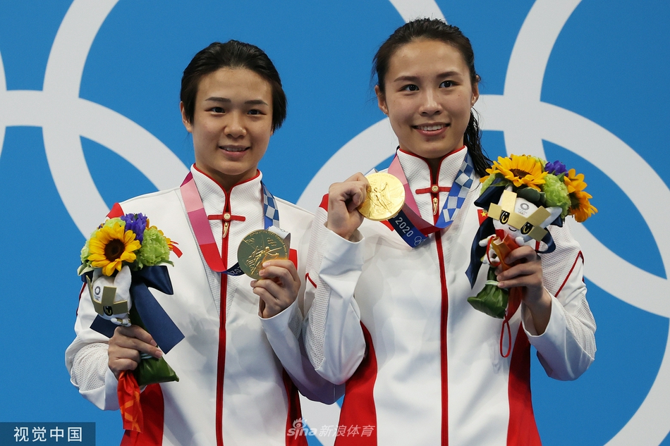 前两轮是规定动作,施廷懋/王涵还是有些紧张,她们的动作没有放开,两个规定动作都拿到49.80分,前两跳总分是99.60分。美国队的吉布森/帕尔默也拿到99.60分,两对组合并列第一。 施廷懋/王涵的第一个自选动作是205B(向后翻腾两周半屈体),两人无论空中动作,还是同步性都相当不错,王涵的水花略大一些,这一跳得到75.60分,总分是175.20分。三轮结束后施廷懋/王涵独自领跑,意大利队160.20分排在第二,加拿大队位居第三。 第二个自选动作中国组合做了305B(反身翻腾两周半屈体),两人的空翻同步性很不错,入水上王涵的身体稍微扭了一下,这一跳中国组合得到74.70分,总分变为249.90分。在四跳结束后中国组合继续领跑。 最后一跳施廷懋/王涵做的是405B(向内翻腾两周半屈体),从侧面看两人的动作就像一个人在完成,这一跳拿到了76.50分,总分是326.40分,她们确保了这枚金牌。加拿大的阿贝尔/贝列尤拿到银牌,德国队以284.97分拿到铜牌。 (Chimera)