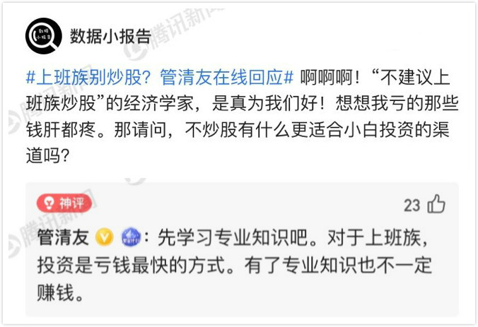 [时事新闻] 经济学家不建议上班族炒股?本尊回应:如同拿大刀冲进重机枪阵地 |