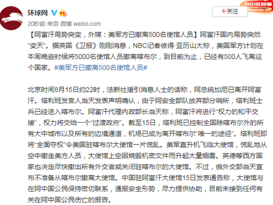 据CNN记者沃德(Clarissa Ward)描述,塔利班武装的逼近,让首都喀布尔的居民们惊慌失措,街道上一片混乱,车辆乱停乱开,银行出现挤兑,各国大使馆外民众排队办理签证。 塔利班“和平攻入”喀布尔之后,当地一家医院在推特上发布声明说,40多人在喀布尔郊区的冲突中受伤并入院治疗。据目击者和该国内政部的说法,喀布尔的几个地方都发生了枪击事件。 接受当地媒体Tolo News采访的阿富汗人表示,他们要求阿富汗政府和塔利班避免在交接中进一步牺牲人民,并向公众通报未来的情况。 民众表示,任何成立的政府都应确保人权,并应禁止在该国发生进一步暴力。他们不希望阿富汗再次崩溃,成为废墟,回到20年前的状态。 2001年的“9·11”事件后,以美国为首的联军在当年10月7日起对基地组织和塔利班发动“反恐”战争。近20年的战争,已造成阿富汗平民伤亡约30万人。 2020年2月29日,美国与塔利班在卡塔尔多哈签署和平协议。拜登政府于今年上台后,宣布重新审议美塔和平协议。过去两个月,随着美国和北约驻军逐渐撤出,卷土重来的塔利班和政府军的战斗不断升级。 周边国家早已对阿局势的迅速恶化表示担忧。阿富汗巴尔赫省首府马扎里沙里夫靠近乌兹别克斯坦边境,巴达赫尚省则与巴基斯坦、中国、塔吉克斯坦接壤。 联合国近日警告,此次一旦塔利班攻入喀布尔,将对再次平民造成“灾难性打击”。历经30多年战乱,该国的交通、通讯、工业、教育和农业基础设施遭到严重破坏,600多万人沦为难民。 难民署预计今年将有40万阿富汗人逃离该地。全世界有260万阿富汗难民,其中140万在巴基斯坦,100万在伊朗。这两个国家承担着很大压力。