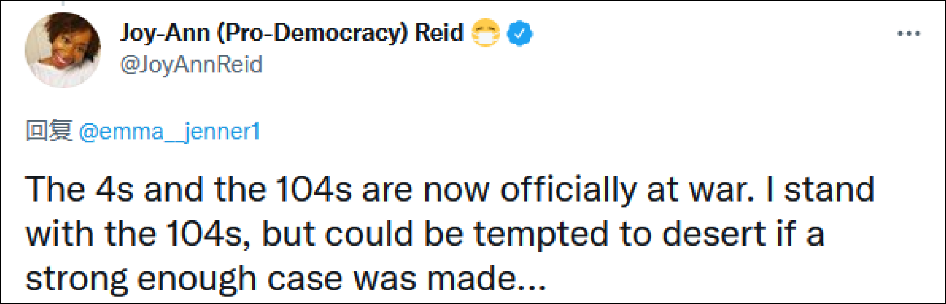 看到网友们争来争去的情形,那些原本认定答案是104的人都变得有些摇摆了——莫不是自己一直都搞错了? “答案是4的人和答案是104的人正式开战了。我支持104,但如果有足够有力的理由,我可能会放弃……”