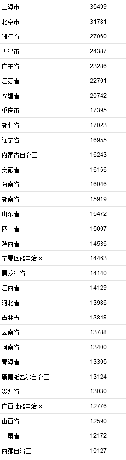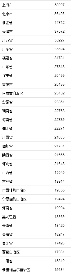 8省份居民人均消费支出超全国 随着居民收入持续恢复性增长以及疫情形势不断好转,居民消费需求逐步释放,消费支出延续反弹态势。 国家统计局数据显示,前三季度,全国居民人均消费支出17275元,在上年同期下降3.5%的基础上名义增长15.8%;扣除价格因素,实际增长15.1%。 跟全国水平相比,上海、北京、浙江、天津、广东、江苏、福建、重庆8省份前三季度居民人均消费支出超过了全国水平。 你的收入和消费是什么水平?(完)