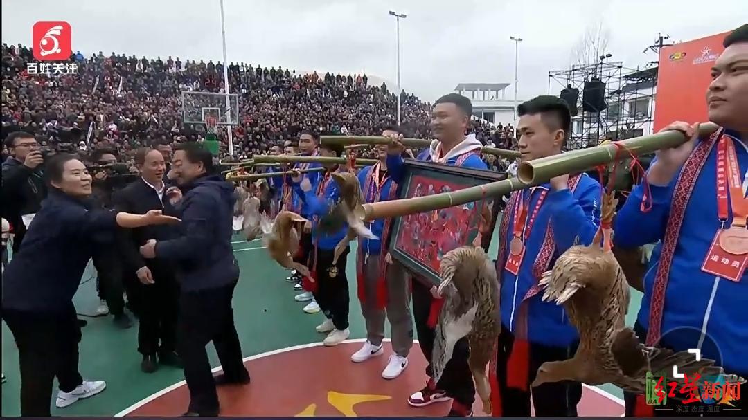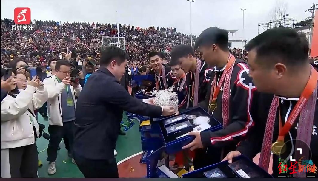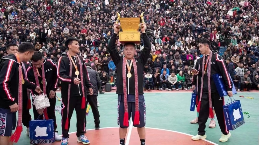 界面新闻记者 | 李如嘉 2022年夏天火遍全网的“村BA”今年全新升级为贵州省首届“美丽乡村”篮球联赛,2023年3月25日、26日,联赛总决赛在其发源地贵州黔东南台江县台盘村篮球场举办。因为突如其来的大雨,原计划26日晚的冠军争夺赛延期到了27日下午14:00,就在刚刚,最终结果出炉,黔东南州代表队夺得了这次联赛的总冠军。 “村BA”是网友们为台盘村“六月六”吃新节篮球赛起的昵称。吃新节是苗族庆贺丰收的传统节日,苗族人会身着盛装,载歌载舞,举办各种活动来庆祝。台盘村在吃新节举办篮球赛已有几十年的传统,去年在网络“出圈”之后,中国篮协主席姚明也曾在采访中提到“村BA”,表示想去现场观赛,担心自己拿不到票。 今年的联赛延续“接地气”的风格,参赛者以村民为主。现场气氛洋溢着苗族人特有的热情,决赛奖品都是来自当地村民或者合作社里养殖和生产的鱼、家禽和大米等,比赛中穿插的民族歌舞演出演员均为来自地方的返乡青年。 据贵州省体育局统计,截至目前,贵州省首届“美丽乡村”篮球联赛已开展超过5000场比赛,有效带动了举办地旅游、文化、经济等发展。 携程数据显示,上个周六(3.25),贵州黔东南苗族侗族自治州台江县酒店预订量环比前一个周六(3.18)增长133%。客源地城市主要是凯里和贵阳。按照年龄分类,90后占比达5成,80后占比25%,00后占比17%。 据“今日台江”报道,为了让球场更加规范安全,台江县台盘村启动了“村BA”球场改扩建项目。球场改造之后,设施更加的完善,看台更多也更安全了,观众座席从一万多人增多到两万多人;同时在篮球场旁边修建配套了媒体采访接待间、宾客会客休息间、运动员更衣休息间,改造了公共卫生厕所,并对现有的停车场进行了拓宽与规范划分停车位。 “体验感非常棒,强烈推荐,只有去了才知道,现场氛围拉满,村民极其热情。”特地坐高铁从贵阳出发去台盘村观看比赛的刘女士告诉界面新闻,她非常喜欢现场的篮球氛围,现场有很多来自各个地方的篮球爱好者,她不仅看到了篮球比赛,还欣赏到了各种歌舞表演。 “去台盘就像是朝圣,主要是感受这种文化和氛围,体验上万人聚集在一起观看一场赛事的感觉。”郑晓龙对界面新闻表示。 郑晓龙平日在台江县支教,这次也前往台盘村观看了总决赛,县城的媒体提前一两个月已经在为赛事做宣传和预热,可以看到村民们也在做各种准备。