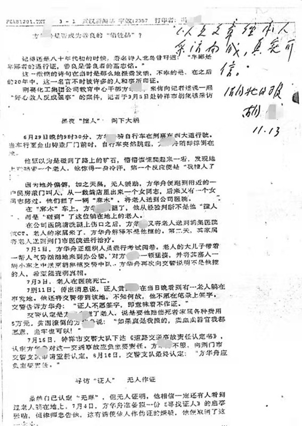 [时事新闻] 湖北一教授被指撞死老人:自证清白21年,目击者称老人被撞前已倒地 |