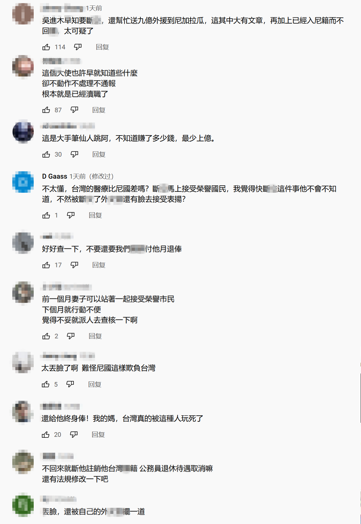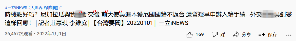 绿营方面也破防了,大骂吴进木是“弃台不顾的叛徒”。台媒3日报道称,前民进党“立委”、“台独”大佬林浊水认为吴进木的一连串举动“不合理”,发文称其“断交”前办退休,刚“断交”就入籍,“断交”前报回的都是好消息,而“断交”后又不返台汇报。 他怒斥吴进木此举是“背叛台湾”,喊话台当局对其即刻展开调查,并追回退休金,“太不像话了!还不认真追查?鸣鼓而攻之!‘铨叙部’(台人事部门)马上先追回退休金!” 民进党“立委”林淑芬日前也就此事质询台湾外事部门负责人吴钊燮,批评吴进木不返回台湾的做法不符合岛内相关保密条例规定,要求外事部门给出回应。 报道称,按照台湾地区的相关规定,像吴进木这样的工作人员属于“法定涉密人员”,在离职、退职或移交机密未满三年时出境会受到管制。林淑芬表示,吴进木在外国办理退休且不回台湾已经违反了这条规定,可能会造成机密保护漏洞,让相关法律徒有形式。 吴钊燮1日对此解释称,吴进木的确属于涉密人员,受到相关法律的约束,但他目前是因为要照顾行动不便的夫人才无法返台。他也承认从此事中可以看出相关规定的确存在不足,会检讨并做出更严谨的修改。 “吴进木的妻子上个月接受表彰时还身体健康,这个月就行动不便了?”显然对于这番说辞,岛内一些民众并不买单。