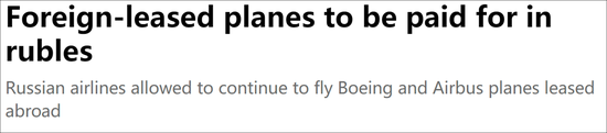 RT报道指出,今年3月,多家飞机租赁公司取消了与俄罗斯航空公司的合同,并要求他们归还500多架飞机。 但据路透社报道,俄罗斯表示,这500多架飞机中有78架是在国外被扣押的,这意味着俄罗斯境内还有400多架外国飞机可以使用。 3月31日,俄罗斯副总理鲍里索夫尤里·鲍里索夫表示,这些从外国租赁的飞机将继续留在俄罗斯。 “所有的飞机,也就是外国飞机,都将留在俄罗斯。”鲍里索夫说,“随着制裁的实施,一些飞机在国外被扣押,但绝大多数波音和空客飞机仍在俄罗斯。” 与此同时,普京表示,他已指示政府制定措施,减轻俄罗斯航空公司的租金支付负担。 普京在与航空公司和飞机制造商代表举行会议后发表电视讲话说:“关于租赁款项,让我提醒你们,其中很大一部分是支付给不友好国家’的公司的,而他们违反了合同义务。” 普京称,莫斯科将向国内航空公司提供1000亿卢布(约合人民币76.52亿元)的支持,帮助它们应对制裁的后果,国内航班将在2022年获得政府补贴。 除此之外,由于俄乌爆发军事冲突,俄罗斯还受到了“禁止向俄罗斯供应飞机和飞机零部件”的制裁。 作为回应,普京签署了一项法律,允许俄罗斯航空公司重新注册外国飞机并继续在俄罗斯国内飞行。