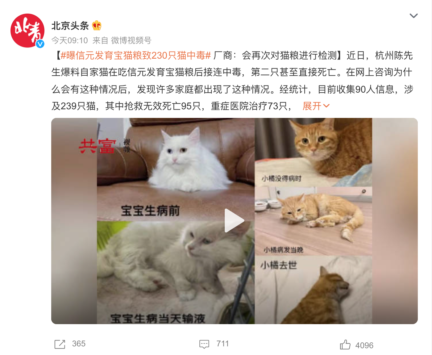 上海信元回应近百只猫咪食用“饕餮成猫粮”后死亡:未找到相关原因,承接后续相应诊疗费用
