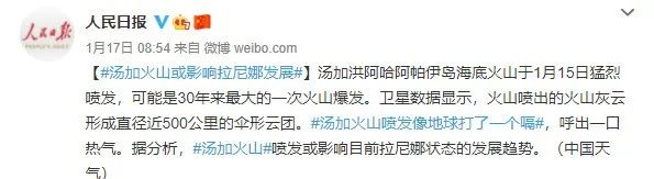[时事新闻] 汤加海底火山再次喷发 引发海啸或波及多国 |