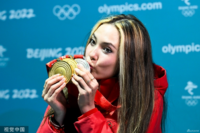 互相激励 互相学习 在单板滑雪女子U型场地技巧决赛中,美国队的克洛伊·金成功卫冕。中国队选手蔡雪桐和刘佳宇则分别获得第四名和第八名。从平昌到北京,中美选手同场竞技,成为很好的朋友。 “我叫蔡雪桐‘桐桐’,叫刘佳宇‘佳宇’。我们在国外比赛的时候经常聚会,我们是永远的朋友。”克洛伊·金表示,“中国队选手以各自的方式推动这项运动进步,她们一直鼓舞着我。” 对于克洛伊·金的表现,蔡雪桐也不吝赞美。“我一直在挑战她,也很欣赏她的竞技能力。她在不断提升难度,激励所有的选手不断突破自己。”蔡雪桐说。 团结友爱、公平竞争、相互理解——中外运动员在冰雪中相识相知,在团结中携手前行,一起向未来。 在花样滑冰团体比赛中,美国队两位冰舞运动员经过采访区时,看到了正在接受采访的中国队冰舞组合王诗玥/柳鑫宇。“你们是非常棒的运动员,我知道你们有多努力!”美国队运动员与王诗玥/柳鑫宇拥抱,成了采访中的一段美妙小插曲。两对中美组合曾长期一同训练,在赛场上相遇格外高兴。 在速度滑冰女子3000米比赛中,首次参加冬奥会的中国队选手、22岁的阿合娜尔·阿达克和德国队49岁老将克劳迪娅·佩希施泰因分在了一组。作为冬奥会上年龄最大的参赛选手,佩希施泰因已是第八次参加冬奥会。 比赛中,阿合娜尔率先冲线,领先佩希施泰因近5秒。冲过终点线后,阿合娜尔与佩希施泰因击掌致意,并通过翻译表达了敬意。“我表达了对她的尊敬,要学习她坚持不懈的精神。”阿合娜尔说。 佩希施泰因也对中国选手送上了祝福:“你滑得很好,展现了自己的实力,你的未来会越来越好。”