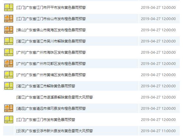 从4月26日11时25分起,广州市三防总指挥部启动防暴雨三级应急响应,于26日13时15分结束应急响应;当天22时10分,市三防总指挥部再次启动防暴雨三级应急响应,并于23时30分升为防暴雨二级应急响应,于27日1时50分结束防暴雨应急响应。