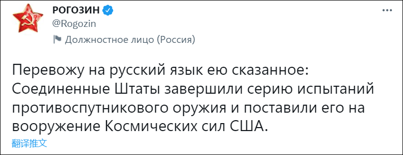 [时事新闻] 俄航天集团总裁驳美声明 反卫星武器恐引发世界大战 |