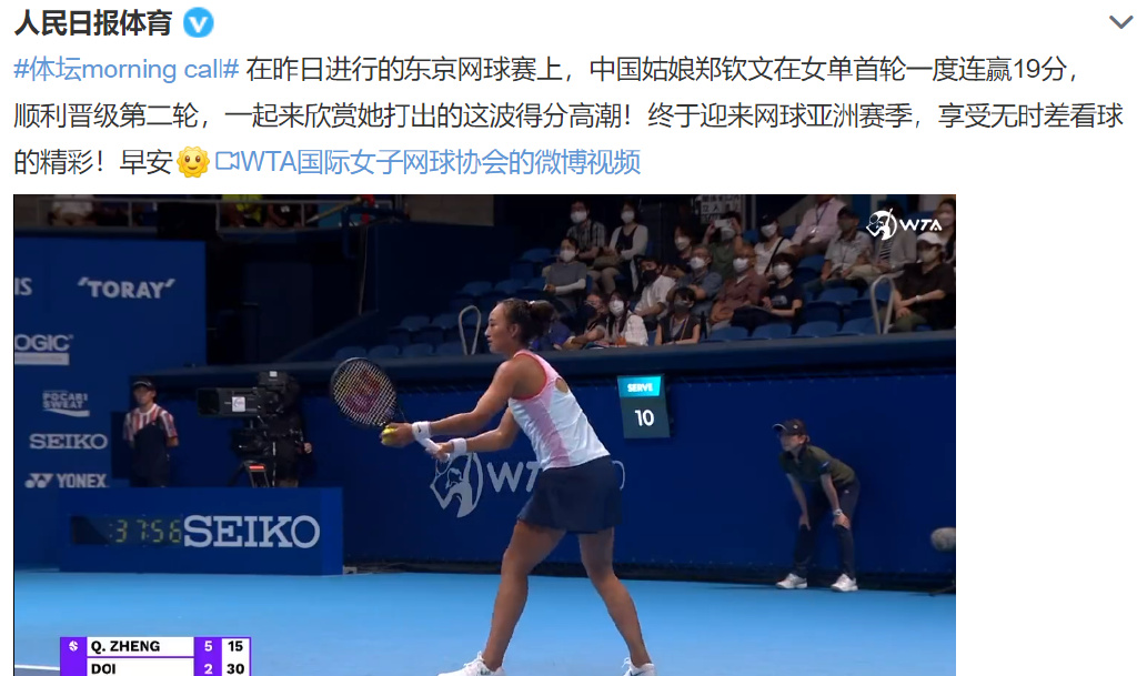[时事新闻] 体育早报|郑钦文夺生涯最高级别冠军 男排爆冷3-0胜巴西 |
