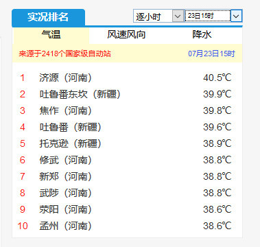 这两天,我国多地的高温重新开火,热浪席卷了南北方多个省份,对于北方很多省份来说,这两天已经有了盛夏的感觉——不仅气温高,而且湿度也不低,有蒸桑拿的感觉。7月23日下午的卫星云图上看,我国中东部多地仍然处在晴朗状态,高温天气继续在很多省份肆虐。 在这当中,今天下午我国河南的高温尤其凶猛,下午15点,中央气象台的全国高温榜上显示,前十名中有7个都是河南的城市,而河南济源更是高达40.5度,焦作气温也高达39.8度,相反吐鲁番被河南包围在当中,可见河南比同一时刻西北内陆的火炉吐鲁番还要酷热。 毫无疑问,今天白天我国气温最高的地方是河南,河南济源最高气温达到了41度,为当地今年以来的新高,而今天济源的湿度其实也不小,最高的时候湿度高达94%,其实还是有闷热的感觉,而不是像之前的时候是烧烤型的干热。除了济源,今天河南的很多城市也很热。 这种高温天气与今天副热带高压的活动有关,7月23日,副热带高压有所东撤,从500百帕天气分析图上看,代表副热带高压的588位势线位于河南南部一带,副热带高压所带来的炎热也正好就笼罩河南等地,甚至超过了新疆内陆的吐鲁番火炉。 对于河南来说,这样的炎热当然不是好消息,自从今年以来,我国河南的降雨一直比较稀少,出现了冬春夏三季连旱,7月23日国家气候中心的监测数据上看,河南等地已经出现了比较大范围的干旱,局地特旱,是我国目前的干旱中心,而目前的高温还将进一步加剧这一地区的干旱情况。 那么河南什么时候能下雨呢?副热带高压的北抬其实对于河南来说也是好消息,虽然它带来了高温,但也带来了水汽,河南下雨的可能性其实是变大了的。中央气象台预测指出,在本周末前后,我国河南多地有望出现明显降雨,出现比较大范围的中到大雨,同时干旱的安徽北部、江苏北部也有望补水。这个时期的雨很可能是副热带高压边缘雨带带来的雨,降雨会更加均匀,对于缓解旱情会更有效。