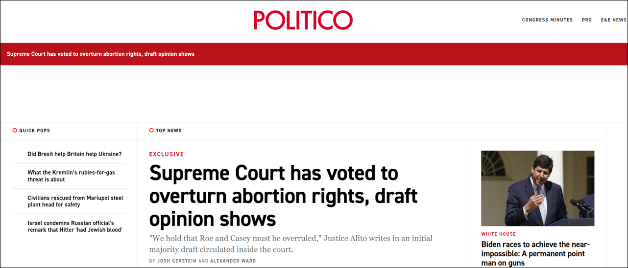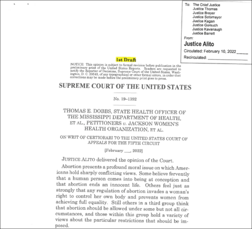 Politico与《纽约时报》分析称,最高法院之所以会在这个时间点弄出一份关于堕胎权的意见书,说到底还是因为其正在审理的密西西比州堕胎禁令案。 2018年3月,时任密西西比州长的共和党人菲尔·布莱恩特签署了一项禁止几乎所有怀孕15周后的女性堕胎的法案,该法案此前由共和党控制的州议会两院以压倒性多数通过,引发广泛争议。 堕胎权支持者将该法案称为“国内最早的堕胎禁令”,并认为该规定因与罗诉韦德案判决结果相抵触而违宪。该州唯一的堕胎诊所“杰克逊妇女健康组织”也迅速向联邦法院提起诉讼,要求阻止这项法案生效。 2018年11月,密西西比州首府杰克逊的联邦地方法院宣布判决称,该法案违反了最高法院关于堕胎权的在先判例,故对密西西比州政府下达禁令,不得执行该法案。尽管密西西比州随即向美国第五巡回上诉法院提出上诉,但并未获得成功。 2020年6月,密西西比州向最高法院提出上诉,该案至今处于审理阶段。而前述阿利托攥写的那份“多数派意见初稿”,正是在通过推翻罗诉韦德案判决来为该案进行“铺路”。 Politico指出,在最高法院的现代历史上,没有任何一份审议意见初稿在案件尚未解决的情况下被公开,故而此次内部文件的披露将对加深外界对该案的争议。