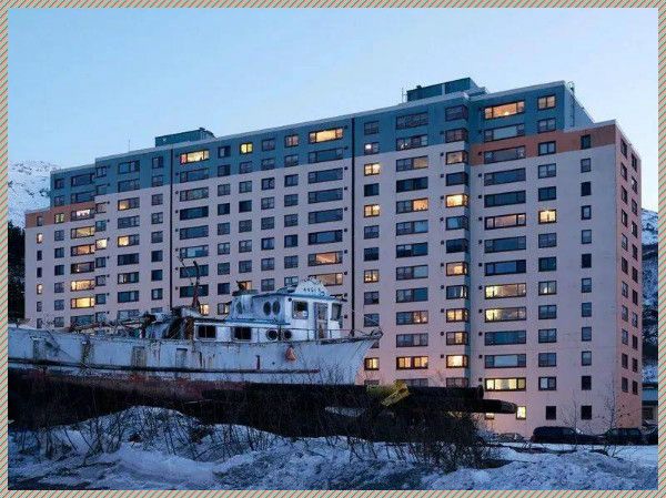 小镇叫惠蒂尔。 15年人口普查214人,20年暴增到了272人,多数为港口职工。 几乎所有镇民都住在这栋叫“比吉奇堡”的大厦里,听起来像海绵宝宝的老家“比奇堡”
