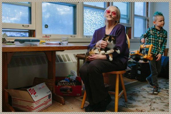 泰利老奶奶从她妈那代就住在惠蒂尔,背后染了绿毛的是她外孙,比吉奇堡第4代传人。 老奶奶的处世原则是:虽身住山卡拉,但时尚永流传。 拍照时,她特意换了一副荧光粉墨镜,并时刻叮嘱老猫Willow:别尿我裤子上。