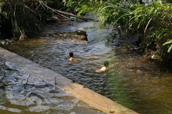 7点多钟,天光还没有暗淡下来,太阳光斜照在泳池上,高温像一块难以消融的铸铁,浸在水里能感受到些许清凉。游泳池里有约二三十人,当刘毅避开人多的地方,游到泳池里侧时,他听到“砰”的一声,响声脆亮,“像是货车撞在什么东西上”,但又来自泳池内部。还没等他反应过来,靠近河道一侧的泳池支架突然发生弯折,将塑料墙撕出一道口子。随后,在水压的冲击下,裂口被完全撕开,池内1000立方米左右的水量哗地向外涌出。 池水涌出的瞬间,刘毅站在泳池靠内一侧,没有受到什么冲击,但看到原本在胸膛处的水位像落潮一样急速下降,他被对面的景象“吓懵了”。靠近断裂一侧的人在水流的冲击下失去了平衡,横七竖八倒在泳池里,然后从裂口处被冲出。“有点像山洪暴发的感觉,人一下就没了。”现在回忆起当时的场面,刘毅仍然流露出紧张。那是一个可能持续撞击他内心的场景:伴随着惊恐的尖叫声,刚还在一个空间里嬉戏玩闹的十几个人,瞬间消失在他的视线中。 大概过了十来秒钟,刘毅回过神来,水位已经退到了脚踝,靠近河道那侧的池壁,像一面坍塌的软墙,没有了形状。泳池里的水流沿着河边陡峭的坡地,还在以很快的速度往下泻,冲出的豁口像一个泥浆滑梯,人们和着被水流带起的泥土,一起滚落到坡下的河堤和河道里。 刘毅抓住一端固定在地面上的尼龙绳,顺着斜坡往下爬,湍急的水流夹杂着沙石打在他的腿上。路过蓄水池时,他看了一眼,里面灌满了泥水,但看起来很平静,既没有声音,也没有水花。 他继续往下爬,在下面的河堤上,看到了一条瘦小的腿,像木棍一样斜插在被水流冲下的土堆里。那是一名被埋在土堆下的小孩,几名已经到达现场的成年人,正一边慌乱地刨土,一边往外拔这条腿。不远处,还有三名成年人在拖拽另一名少年——他被急流冲下来后,卡在了河堤边的石栏杆缝隙里。