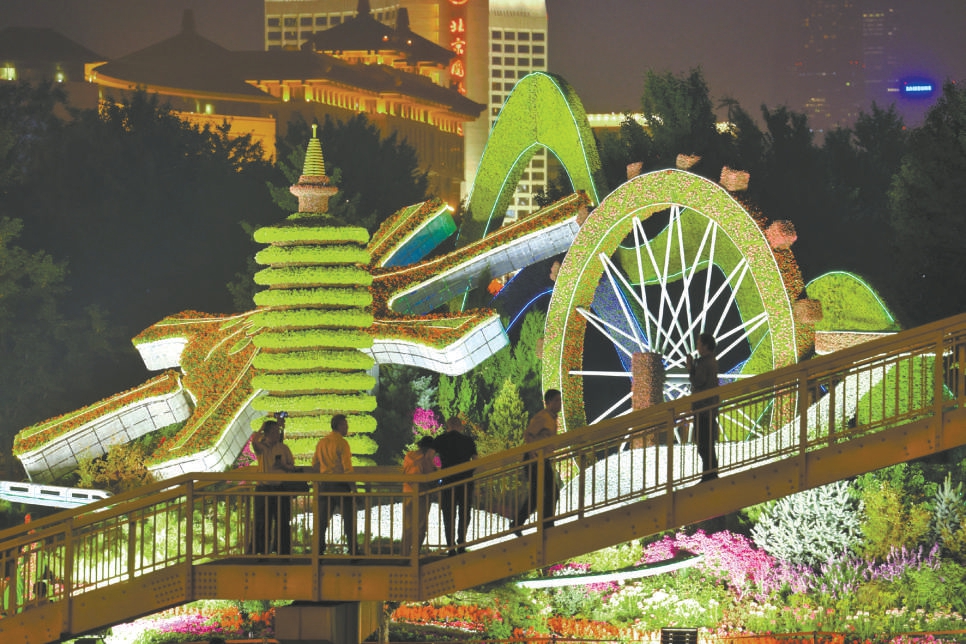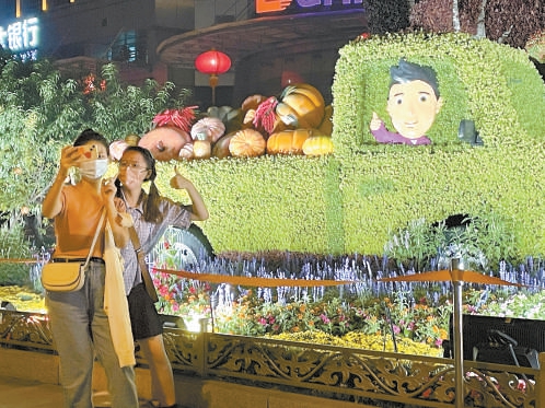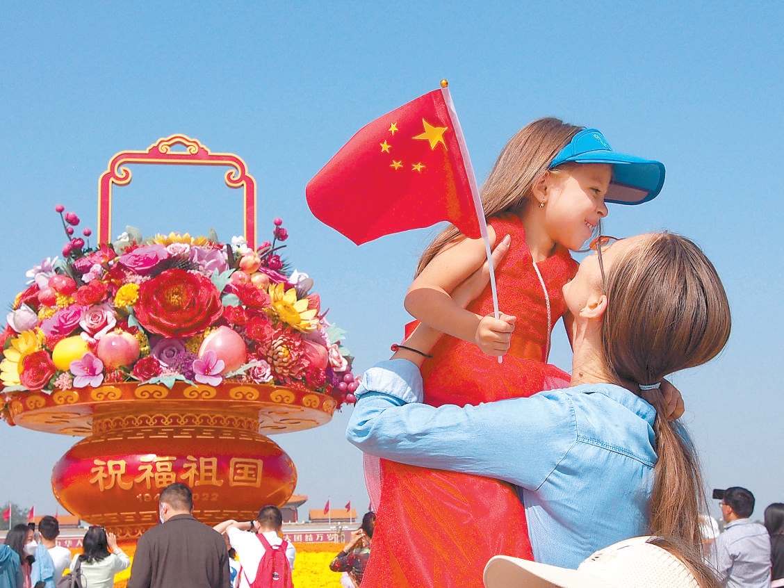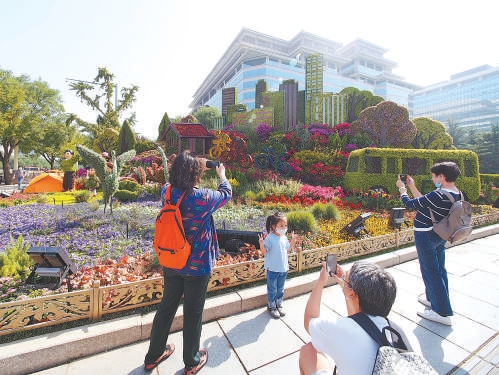 [时事新闻] “祝福祖国”巨型花果篮组装完毕亮相天安门广场 |
