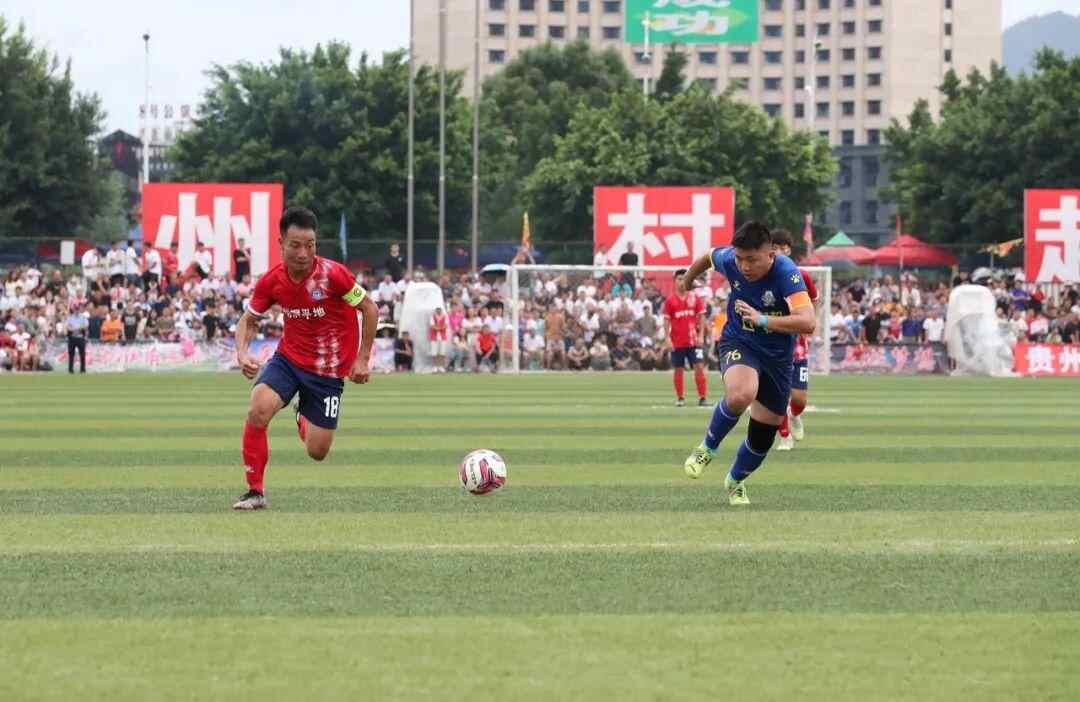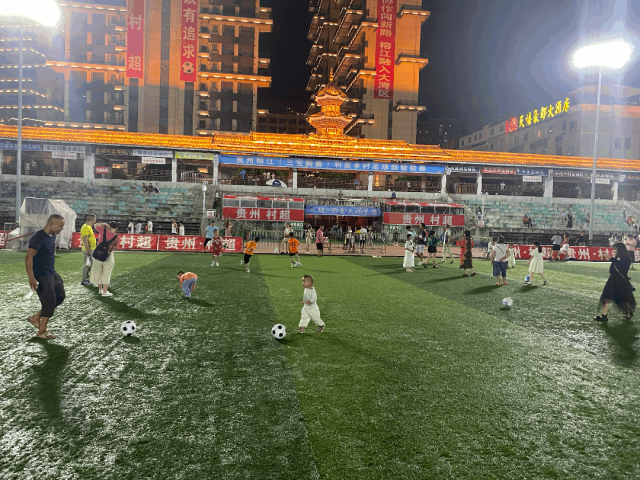 “脑袋”更富 榕江县位于贵州省东南部,这座人口不到40万的山区县城,却有5万人会踢足球。看到这个数据,可能有人会疑惑:在如此偏僻的山区县城,怎么会有这么多人热爱足球? 真正来到榕江,你会发现这个数据并不夸张。榕江县的很多村都有自己的足球队,全县标准足球场就有14个,并且全部免费开放,足球仿佛已经融入他们的血脉中。 目前位列“村超”射手榜第一名的董永恒,是忠诚村足球队的队员。他在榕江县城开了一家小店,卖当地特色美食——卷粉。因技术出众、射门精准,董永恒被网友们亲切地称为“卷粉射手王”。 董永恒和队友们大都是发小,虽然工作地点不同,周末聚到一起踢球却是大家多年的习惯。董永恒说:“我们从煤渣地、沙子地,踢到天然草坪、人工草坪,场地在变,但对足球的热爱没有变。” 对足球的热爱,也是吴化勇多次提到的。吴化勇是朗洞镇平地村足球队的一员,曾因一记漂亮的“倒挂金钩”火遍全网。 在7月23日进行的比赛中,吴化勇带领的朗洞镇平地村足球队遗憾告负,止步八强。比赛结束后,满头是汗的吴化勇走到场边调整状态,“失败了肯定会有失落,但我们付出了自己最大的努力,后面我们会复盘比赛,找到不足,继续前进。” 说起接下来的计划,今年35岁的吴化勇坚定地说,会继续踢下去,因为对足球的爱没有变,“以后可能也会培养更多年轻队员。” “村超”激发了人们踢球的热情,在榕江,几乎每块球场上,都有孩子们奔跑的身影。