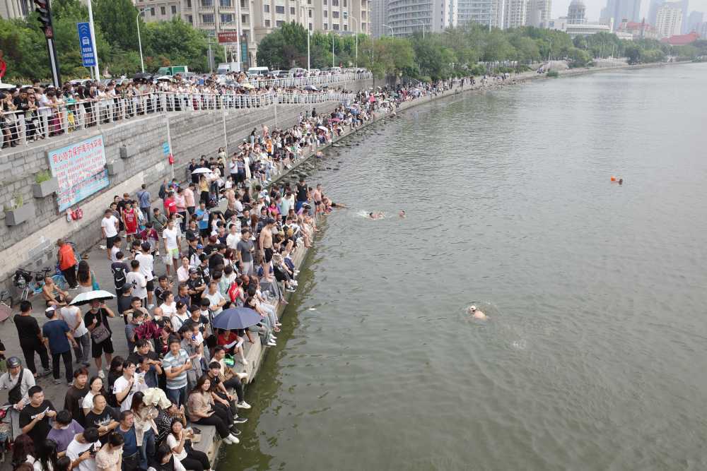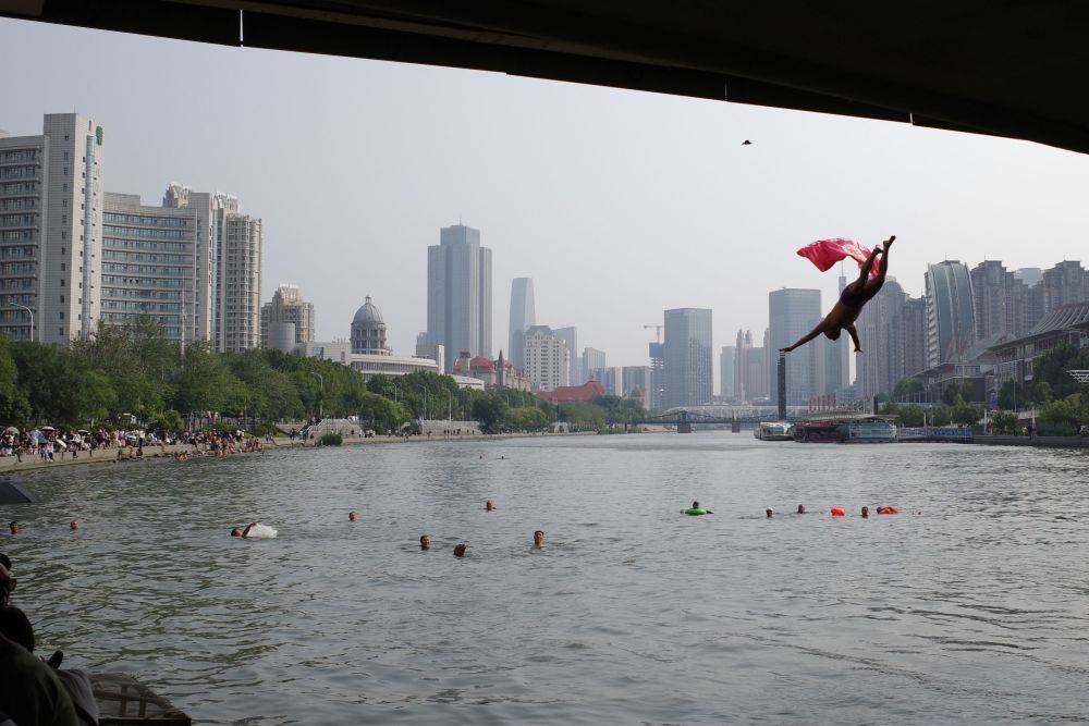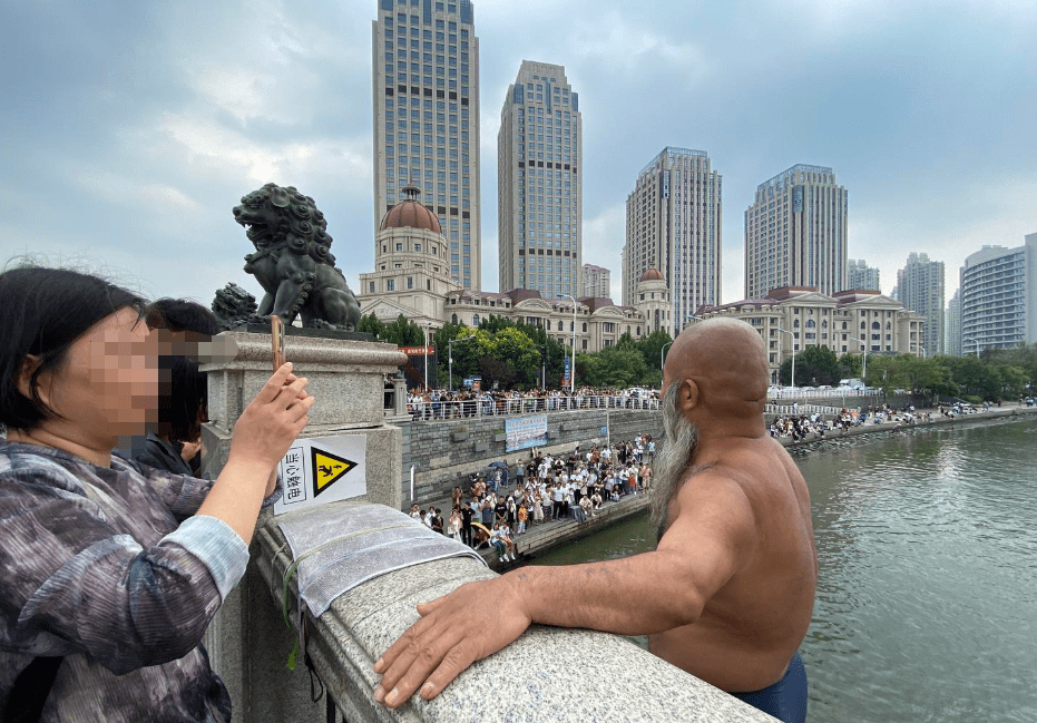 紧张应对的管理部门: 已经加大力度进行劝导 一旦发生危险及时提供帮助 顺着狮子林桥往东走不远,有一家咖啡店,咖啡店的桌子上有一本留言本,“来天津看大爷、大姨跳水,一座快乐的城市,希望以后有机会再来。”最后一页写着。 在网上,有人认为“天津跳水大爷”被围观模仿阻碍了附近的交通,也存在安全隐患,但是更多人则表示,看了“天津跳水大爷”和其他人的视频,感觉到的是鼓励和快乐,甚至有人开玩笑说,最近的狮子林桥已经变成“8A级景区”。 “能不能让天津狮子林桥跳水,变得像当初的淄博烧烤一样火呢?”有网友这样说。 狮子林桥东侧区域属于天津市河北区光复道街道范围。9月1日,该街道办一名工作人员对红星新闻记者说,跳水存在很大危险性,街道办肯定不鼓励在桥上跳水。“特别是那些从外地来的、没有跳水经验的人,我们会进行一些劝阻。” 天津市公安局河北分局光复道派出所的一位工作人员也表示,海河底部深浅不一,不鼓励外地游客跳水,公安机关、综合执法、街道办和其他单位的工作人员现在已经加大力度进行劝导。“另外附近水面上也会有专业的救援人员,确保一旦发生突发情况能够及时处理。” 8月31日、9月1日两天,红星新闻记者还多次拨打了天津市文旅局的电话,希望了解文旅部门对“天津跳水大爷”走红后的应对,但是一直未有人接听。