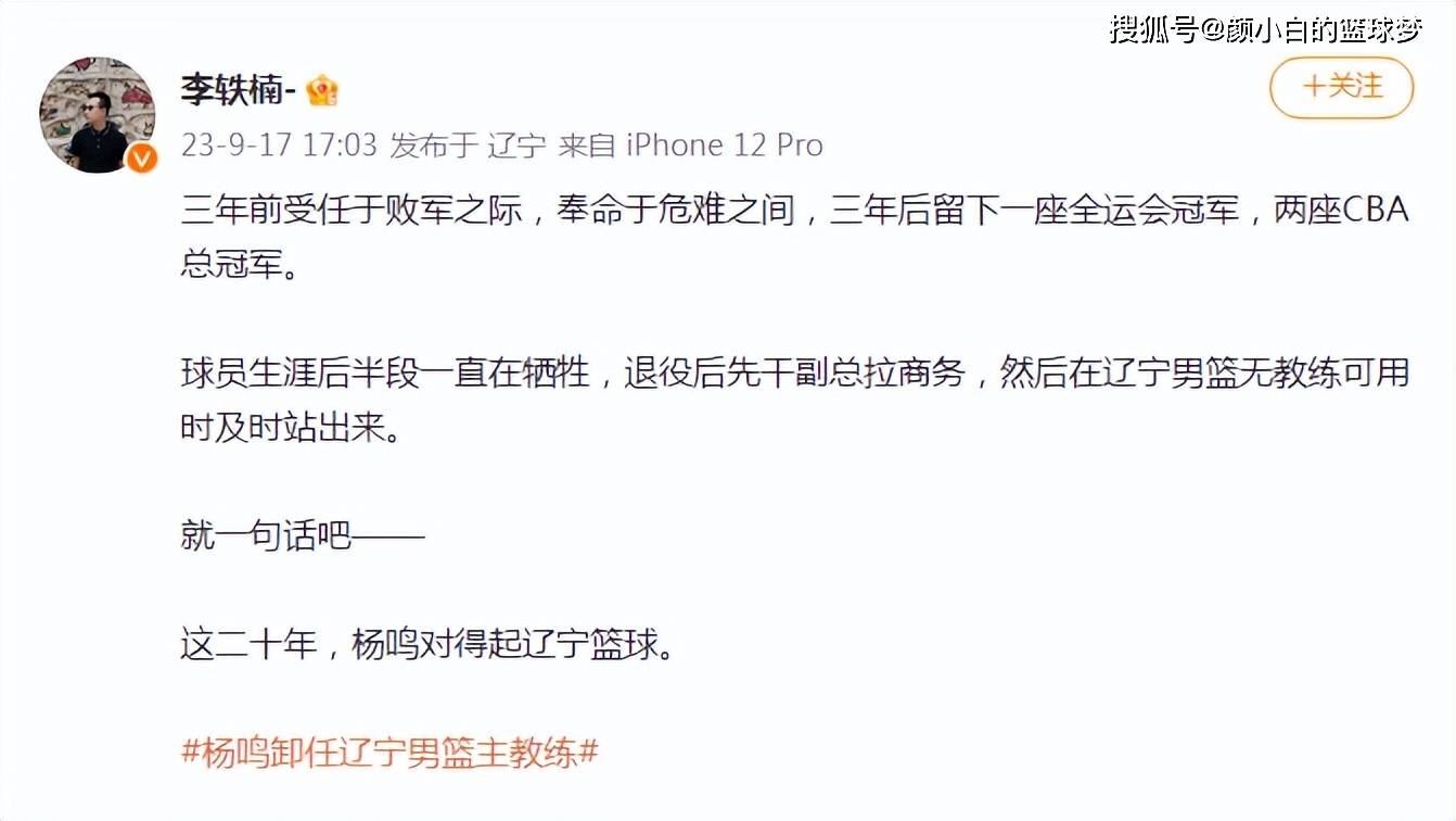 [时事新闻] 尘埃落定!辽宁男篮大合同续约杨鸣,新赛季率队全力冲击三连冠 |