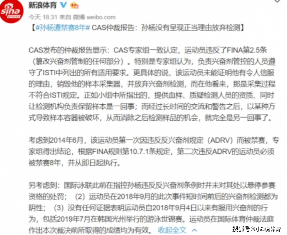 [时事新闻] 官方确认:孙杨复出!月底亮相合肥参赛 |