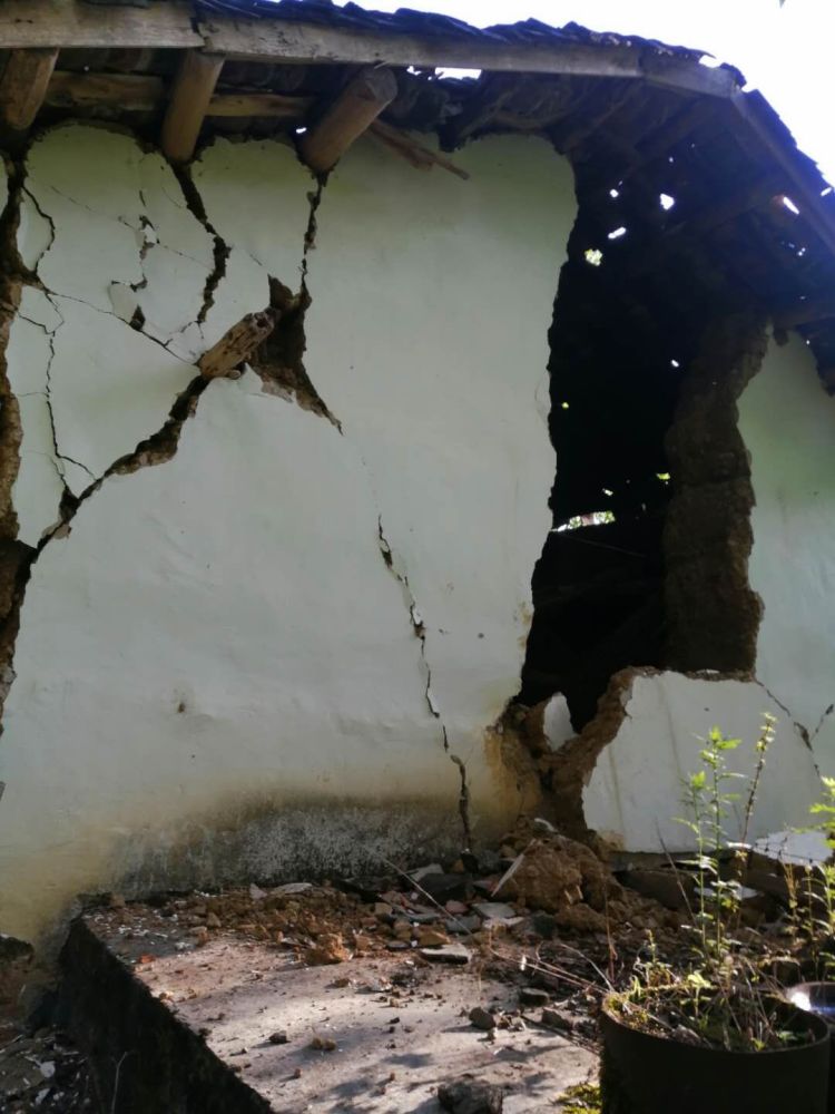 受损的房屋不止这一处,小河镇垭口村一村民描述,地震时自家房屋出现裂缝,邻居房屋也多出现开裂或者房梁倒塌的情况。