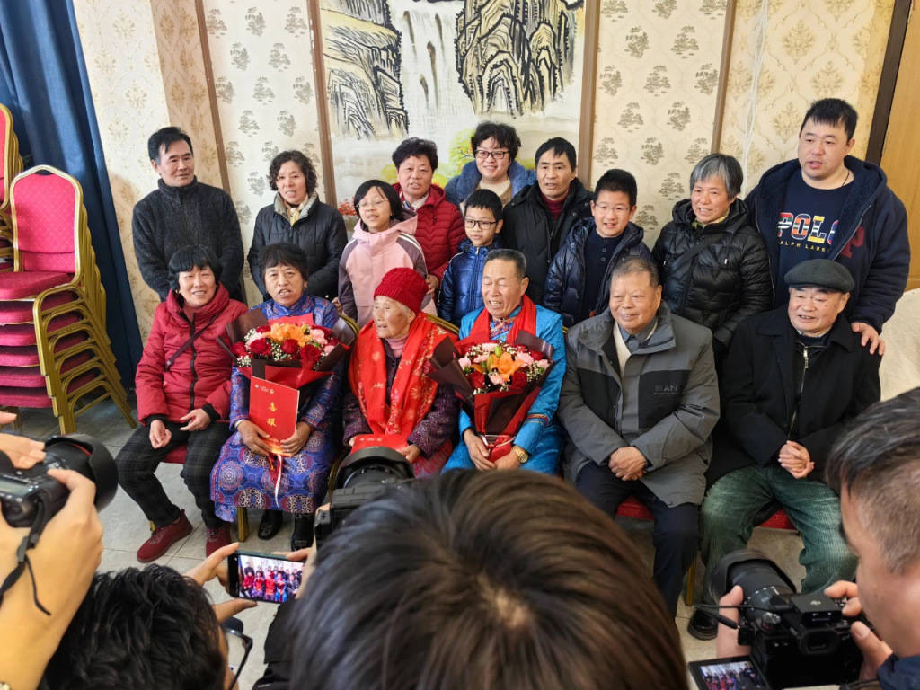 当年,杜新华从上海儿童福利院被送往遥远的内蒙古,跨越了大半个中国,置身于广袤无垠的大草原。最终,他被一对善良的内蒙古夫妇收养,他们把他从鄂尔多斯的保育院带回了达拉特旗的家中。在养父母的精心照顾下,杜新华在内蒙古生活、工作,如今也已子孙满堂。然而,找到江南亲人,一直是他未完成的心愿。 “我时常会想,我到底从哪里来,我亲生父母是否还健在,这种念头驱使我迫切想要找到自己的亲人。”2019年,杜新华踏上了漫长的寻亲之路。 2022年,他在女儿杜红梅的帮助下,对接了江阴寻亲志愿者协会,并将自己的纱布血液样本寄往该协会。2024年,国家“团圆行动”数据库升级带来契机,借助大数据力量,同年8月24日,江阴寻亲志愿者协会的工作人员吴霞将杜新华的样本邮寄给警方,一场横跨千里的寻亲接力悄然展开。吴霞及其团队驱车辗转江苏、浙江、上海,最终在上海市金山区石化街道四村居委会赵琪的帮助下,联系上了杜新华的亲人。 “通过江阴寻亲志愿者的讲述,我们得知杜先生的祖籍为江苏省泰州市医药高新区(高港区)野徐镇,系彭姓。社区党总支副书记彭祥将杜先生的寻亲帖子发在彭家家族群里。经过反复排查、核实,找到了杜新华的叔叔,就住在我们石化四村,名为彭德山。于是我们立即与彭老先生取得联系,并邀请他到居委会,详细了解相关情况。”赵琪说。 通过多方打听以及彭德山的帮助,志愿者们最终找到了彭永亮。“一开始我的确保持怀疑,毕竟过去六十多年了。”彭永亮说。志愿者吴霞也回忆道:“最初,亲人们的态度十分谨慎,对寻亲的真实性抱有疑虑。但经过多次深入沟通,浙江省公安厅的民警与上海市公安局金山分局吕巷派出所民警一同前往彭永亮家中,让他们放下了戒备,最后也顺利给彭永亮的母亲周玉明采集了DNA样本。”