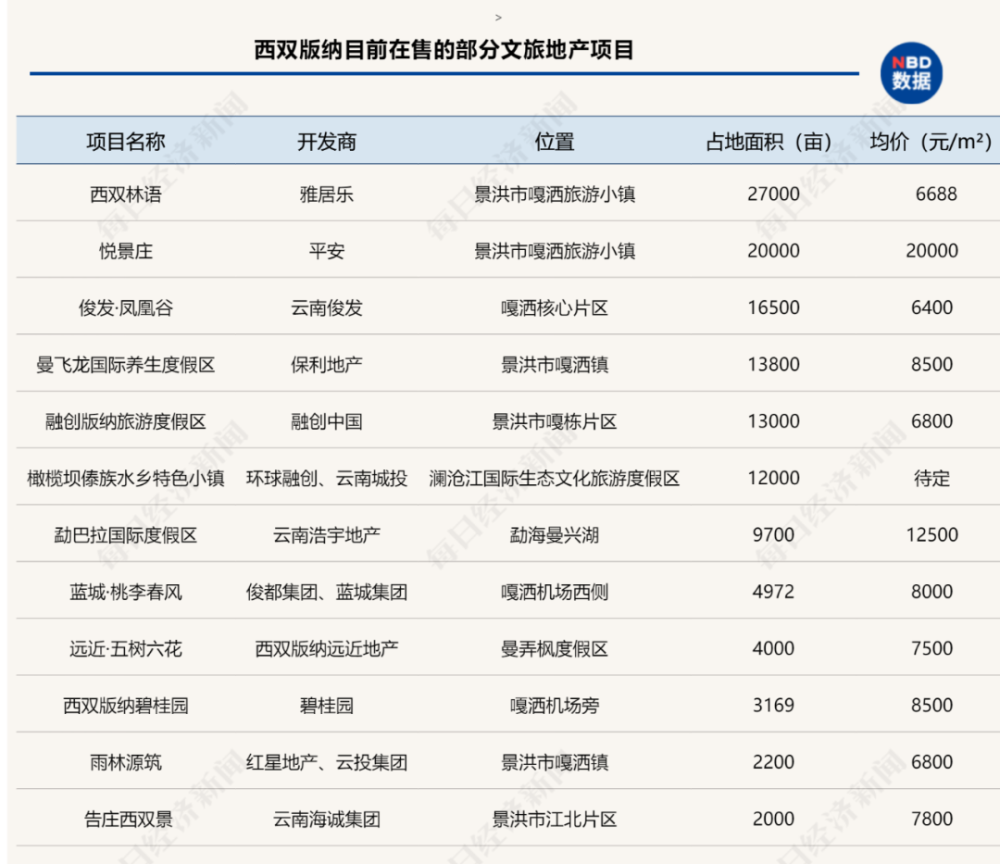 行业巨头的效应也带来一众跟随者的入局,其中尤以来自四川和云南本土的中小开发商居多,如四川的景茂地产、瑞德集团、森林家园地产以及云南广晟、昱锦地产等,投资数十亿至上百亿元打造旅游度假区项目。 如云南广晟投资100亿元建设曼飞龙国际养生度假区;西双版纳美仑在勐腊县投资200亿元打造勐仑旅游度假区;云南昱锦投资100亿元,打造7000亩的勐龙东风旅游综合项目。 西双版纳统计局数据显示,截至2018年底,西双版纳已吸引越来越多的开发商布局旅游地产,投资规模超1500亿元。 记者根据公开资料不完全统计,目前西双版纳在售的文旅地产项目中,占地超过10000亩的项目就多达6个,其中两个项目占地达到或超过20000亩。至于占地超千亩的项目就更多了。 房企纷纷押注西双版纳文旅地产,其主要原因离不开西双版纳得天独厚的旅游资源。 公开数据显示,2019年西双版纳共接待国内外游客4853.21万人次,比上年增长20.0%,实现旅游综合总收入827.95亿元,增长23.4%;就算是受疫情影响的2020年,西双版纳接待国内外旅游者亦达1985.46万人次,旅游总收入369.97亿元。 不过,虽然文旅地产项目拿地便宜,但动辄上千亩、超万亩的项目,开发周期自然也长。