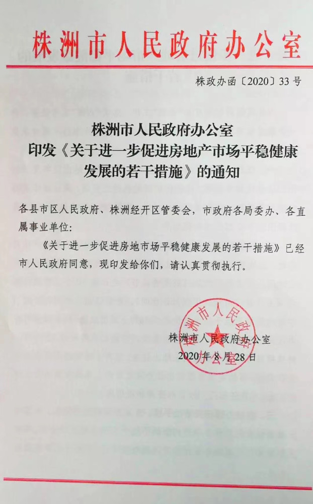 《通知》指出,开发企业购置土地的,在签订土地出让合同并在1个月内缴纳不低于50%土地出让金后,各相关职能部门可容缺办理建设用地规划许可证、不高于已审定规划总面积方案中确定的计容总建筑面积50%的建设工程规划许可证、施工许可证等行政审批,在办理商品房预售许可证时须补齐相关手续。对出让的房地产项目用地,土地竞买保证金按出让起始价的30%设置。 事实上,在8月20日召开的株洲市政府常务会议上,原则上同意了《关于进一步促进房地产市场平稳健康发展的若干措施》。 附件: 《关于进一步促进房地产市场平稳健康发展的若干措施》全文: 关于进一步促进房地产市场平稳健康发展的若干措施为扎实做好中央提出“六稳”工作,落实“六保”工作任务,进一步激活我市房地产市场主体活力,实现房地产市场平稳健康发展。结合我市实际,制定以下措施: 一、优先“熟地”“净地”供应。及时公布土地出让年度计划和出让地块具体信息,优先供应征地拆迁已完成、周边道路及排水排污等基础设施配套到位的地块,确保“熟地”“净地”供应。(责任部门:市自然资源和规划局) 二、降低开发企业土地资金使用成本。对出让的房地产项目用地,土地竞买保证金按出让起始价的30%设置。开发企业竞得土地后,须自签订宗地《成交确认书》之日起10个工作日内签订《国有建设用地使用权出让合同》,自签订出让合同之日起 1个月内缴纳不低于成交总价款50%的土地出让金,剩余部分可在办理商品房预售许可证前全额缴清,但最长不得超过12个月。特殊项目可申请分期缴纳土地出让金,经市土地管理委员会公室审定后,可约定为自签订出让合同之日起二年内全额缴清土地出让金。(责任部门:市自然资源和规划局) 三、容缺办理相关审批手续。开发企业购置土地的,在签订土地出让合同并在1个月内缴纳不低于50%土地出让金后,各相关职能部门可容缺办理建设用地规划许可证、不高于已审定规划总面积方案中确定的计容总建筑面积50%的建设工程规划许可证、施工许可证等行政审批,在办理商品房预售许可证时须补齐相关手续。(责任部门:市行政审批局、市自然资源和规划局、市住房城乡建设局) 四、促进存量住房销售。自本措施施行之日起,在株洲市天元区、芦淞区、石峰区、荷塘区、云龙示范区购买存量住房(二手房,下同),签订了网签合同,且在网签合同签订之日起3个月内全部缴纳完契税的,由市财政按其所缴纳契税额的50%对购房人予以补贴。(责任单位:市税务局、市财政局、市住房城乡建设局) 五、放宽预售资金监管。修订《株洲市商品房预售资金监管办法》,释放监管资金,促进项目建设。在新办法出台前,可参照株洲市人民政府办公室印发《关于应对新冠肺炎疫情促进房地产业稳定发展的政策措施》的通知(株政办函[2020]6号)、《关于进一步推进房地产领域“温暖企业”行动若干政策》(株建联字[2019]21号)有关放宽预售资金监管的政策执行。(责任单位:市住房城乡建设局) 六、加大住房公积金支持力度。符合个人住房公积金贷款条件的购房人,在购买存量住房申请公积金贷款时不受该存量住房公积金已贷款次数的限制,该套住房公积金第3次(含)以上贷款的,期限不得低于5年且不得提前结清。个人住房公积金贷款对象房屋取得商品房预售许可证的,株洲市市区房屋形象进度达到1/5、县(市)房屋形象进度达到1/2的,预抵押到位后,即可发放个人住房公积金贷款。个人住房公积金贷款资金严格按照《株洲市商品房预售资金监督办法》的规定实施监管,确保资金用于项目建设。(责任单位:市住房公积金中心) 七、放宽人才购房补贴资格和条件。对在株洲市区(暂不含渌口区)机关事业、群团组织等用人单位正式工作的,在产业企业及科研院所等用人单位工作满1年以上并签订劳动合同3年以上的,全日制大专学历以上,首次在市区购买新建商品住房,签订网签合同并缴纳契税的,不受年龄和毕业时间等限制,均可参照株洲市人才购房补贴政策的规定,对全日制博士(含E类高层次人才中的博士)和“双一流”高校硕士,全日制硕士和“双一流”高校本科,全日制本科和大专学历人才,一次性分别予5万元、3万元、2万元的购房补贴。由用人单位统一申报,每季度最后一个月集中受理,按季度组织联合审核,分期分批发放补贴。(责任单位:市人才办、市住房城乡建设局、市财政局、市税务局、市人力资源社会保障局、市自然资源和规划局等) 八、建立快速审批通道。从事房地产开发经营的企业,同期开发总规模不受开发资质等级限制。对办理施工许可证并开工的房地产开发项目,工程建设总投资达到25%以上的项目,施工进度完成正负零可依法依规办理《商品房预售许可证》。优化施工图审查,施工图线上审查提前到建设单位取得规划审批总图并作出相关承诺后。(责任单位:市发展改革委、市住房城乡建设局) 九、减轻企业税费负担。受疫情影响的房地产企业可以申请延期纳税申报,对有困难而不能按期缴纳税款的,由企业申请,依法办理延期缴纳税款,最长不超过3个月。(责任单位:市税务局、市财政局) 十、适当控制商业地产规模。除土地出让合同或相关招商协议中有明确约定商业配置条款的房地产开发项目外,可适当放宽调整规划用途(商业改成住宅)审批条件。新报建的房
